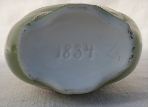 Bohemian porcelain bottle with romanctic scene in transferware made during the 1900's Art Nouveau period. It's numbered on the back. The cork is inside the bottle. 6 1/2" (16.5cm) height 3 3/8" (8.5cm) width 2 1/8" (5.5cm) depth. Good condition a small chip on the base as presented on the following pictures.