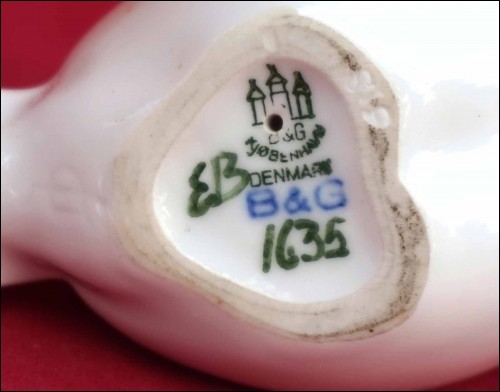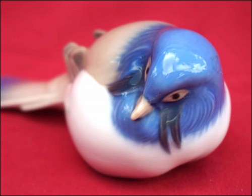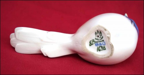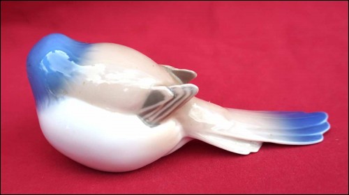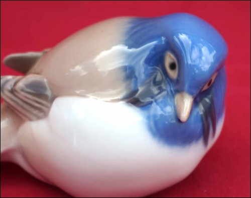 Blue tit bird porcelain figurine model 1635 made by Bing & Grondahl, B & G, in Copenhagen. 5 1/4" (13.5cm) length, 2" (5cm) height. t's signed and stamped on the back. Perfect condition as shown by the following pictures.