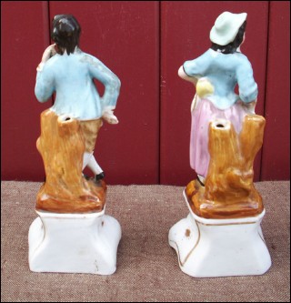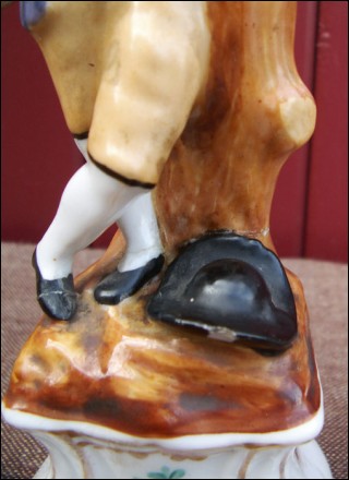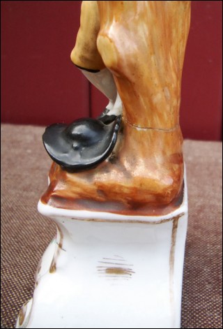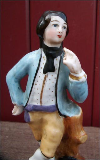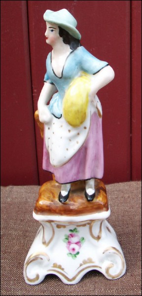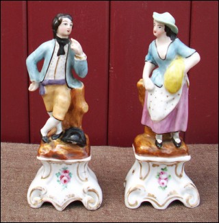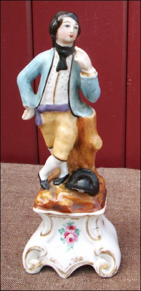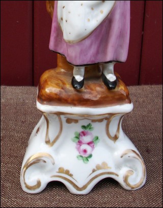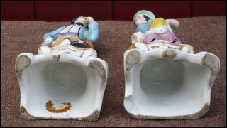 Antique couple of inkwell figurine in old Paris porcelain made during the 1830's Charles the 10th area. They are all hand painted. Unfortunaly not in good condition, the boy is repaired on his legs and has a chip on his hat, the girl has a chip on the inside of the bottom. 7 1/4" high 3" width 2 1/2" depth.