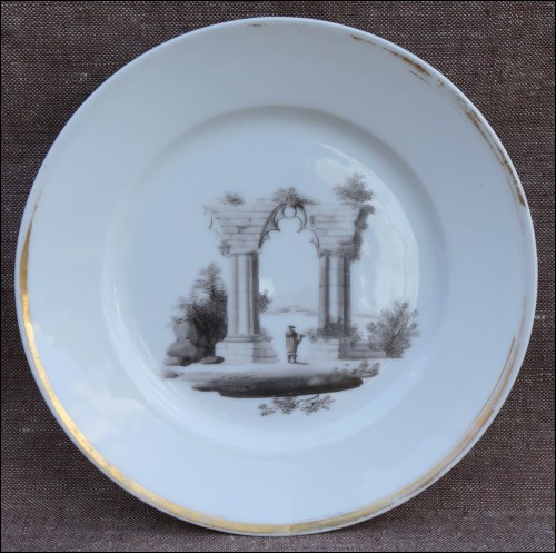 Empire Italian Plate Grisaille Porcelain Campaign Deroche Paris