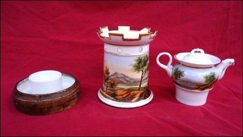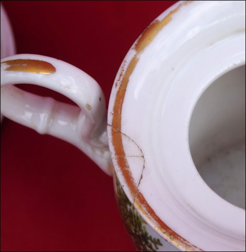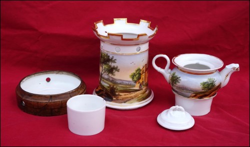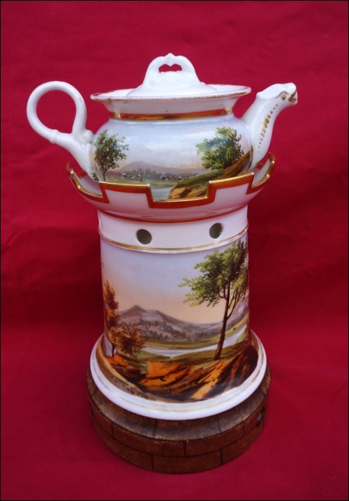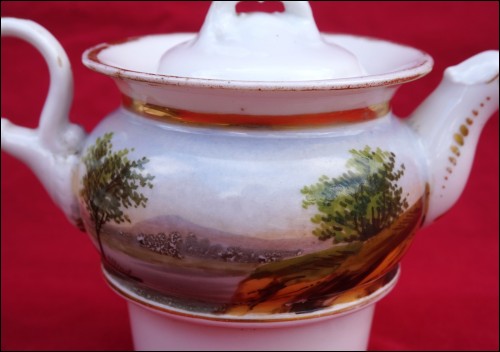 Empire Tisaniere Herbal Pot Hand Painted Porcelain Italy Tuscany Landscape 1820's