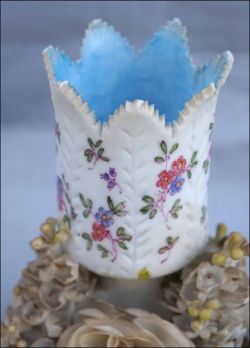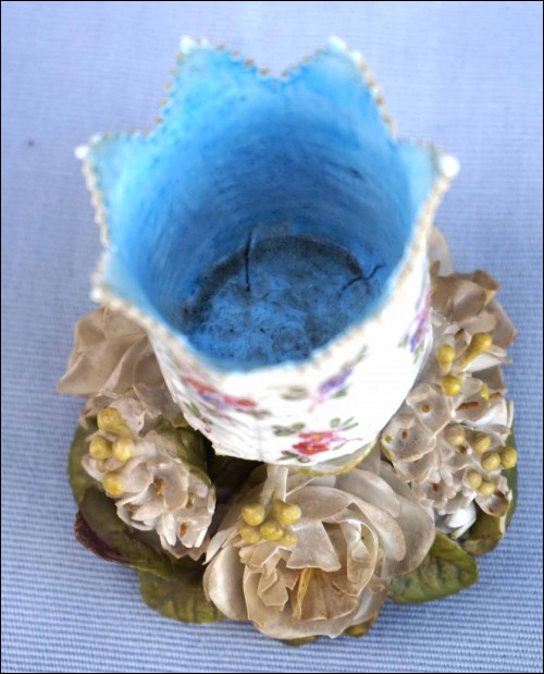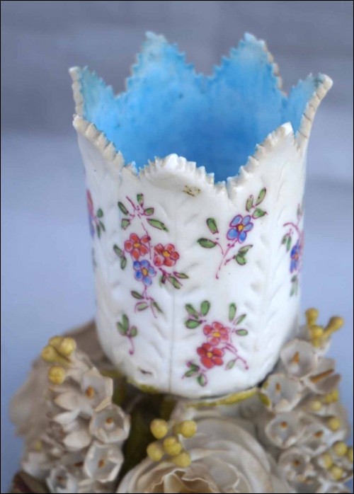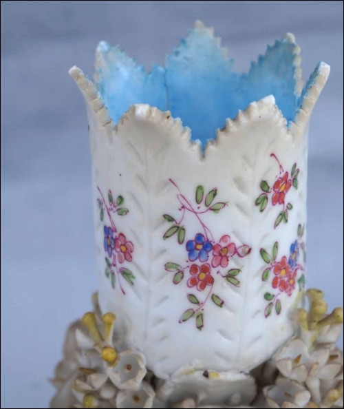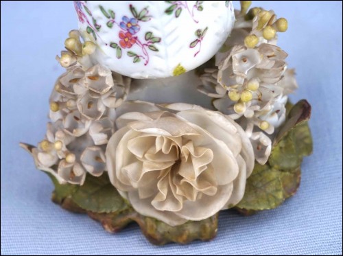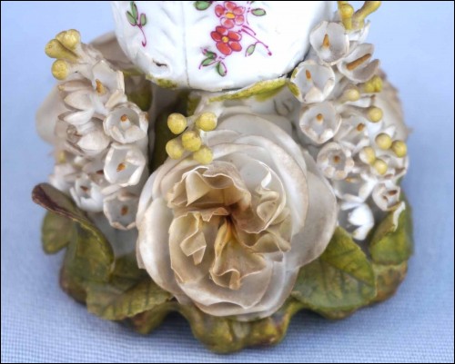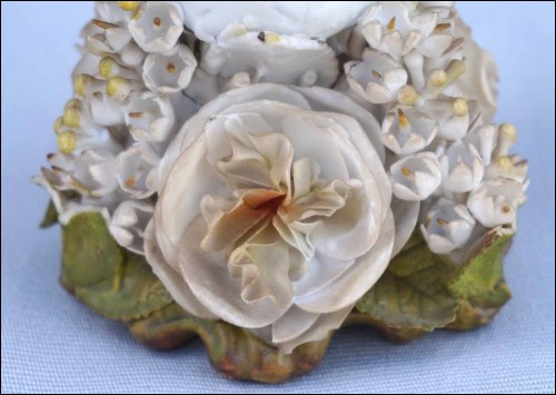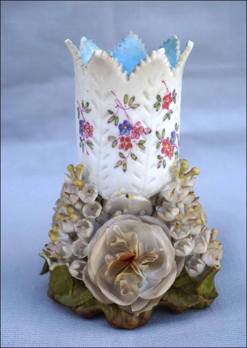 German Porcelain Flowers Relief Bridal Small Vase 19th C