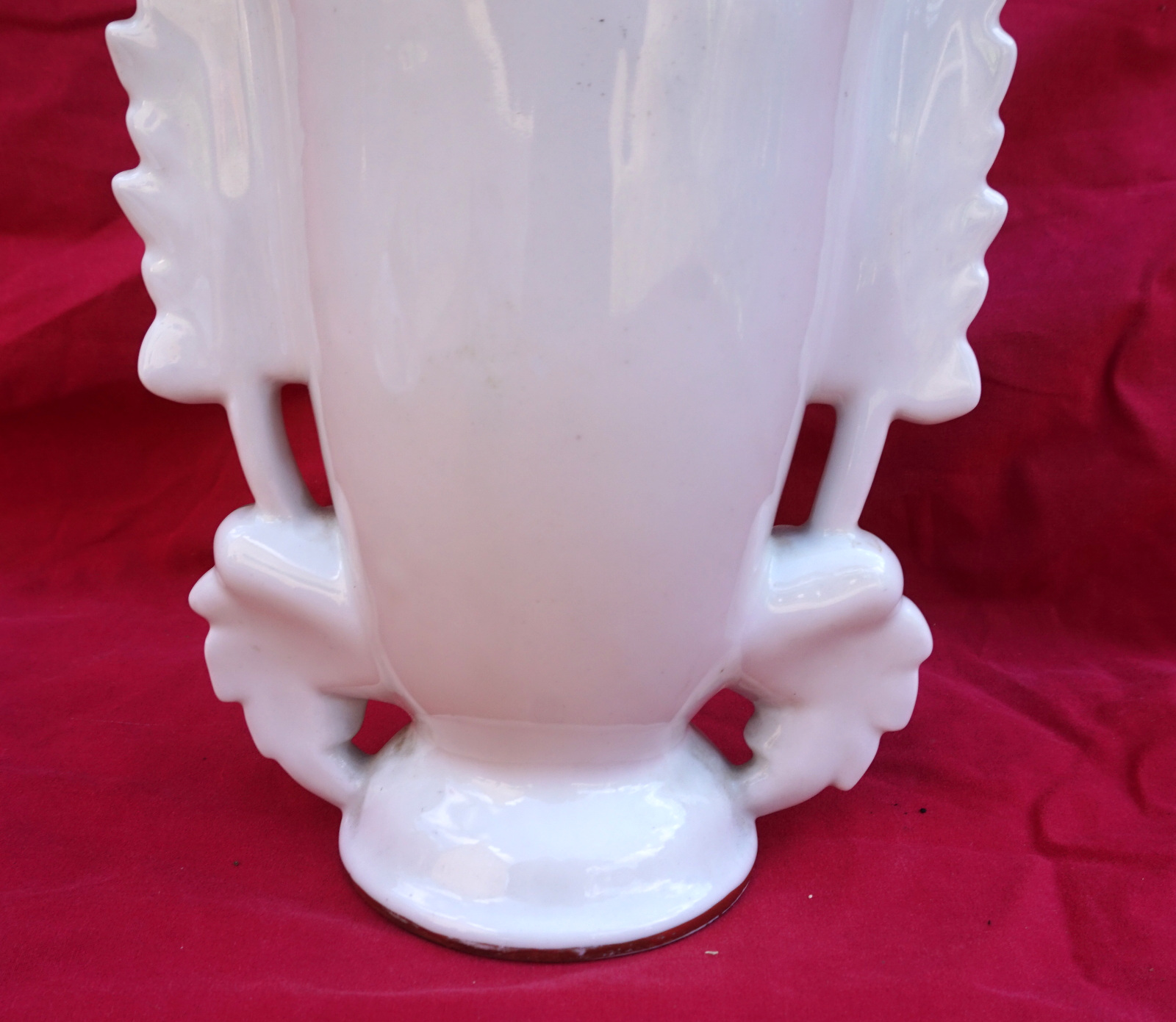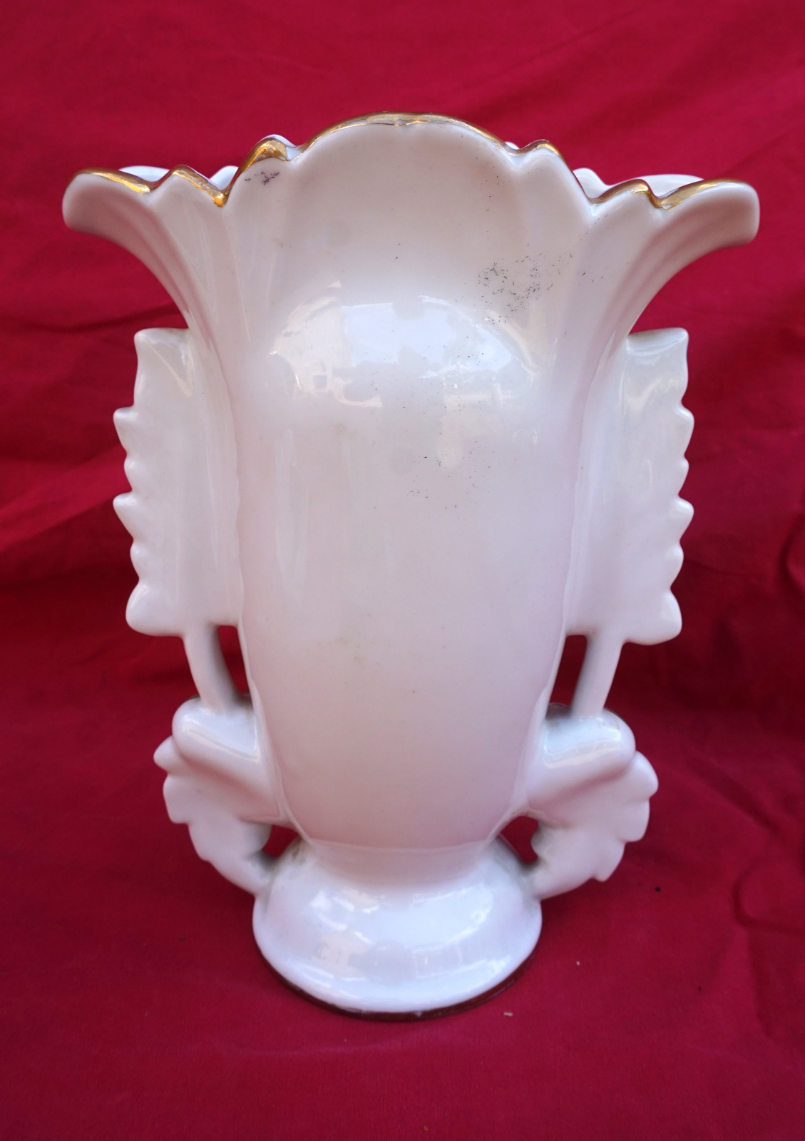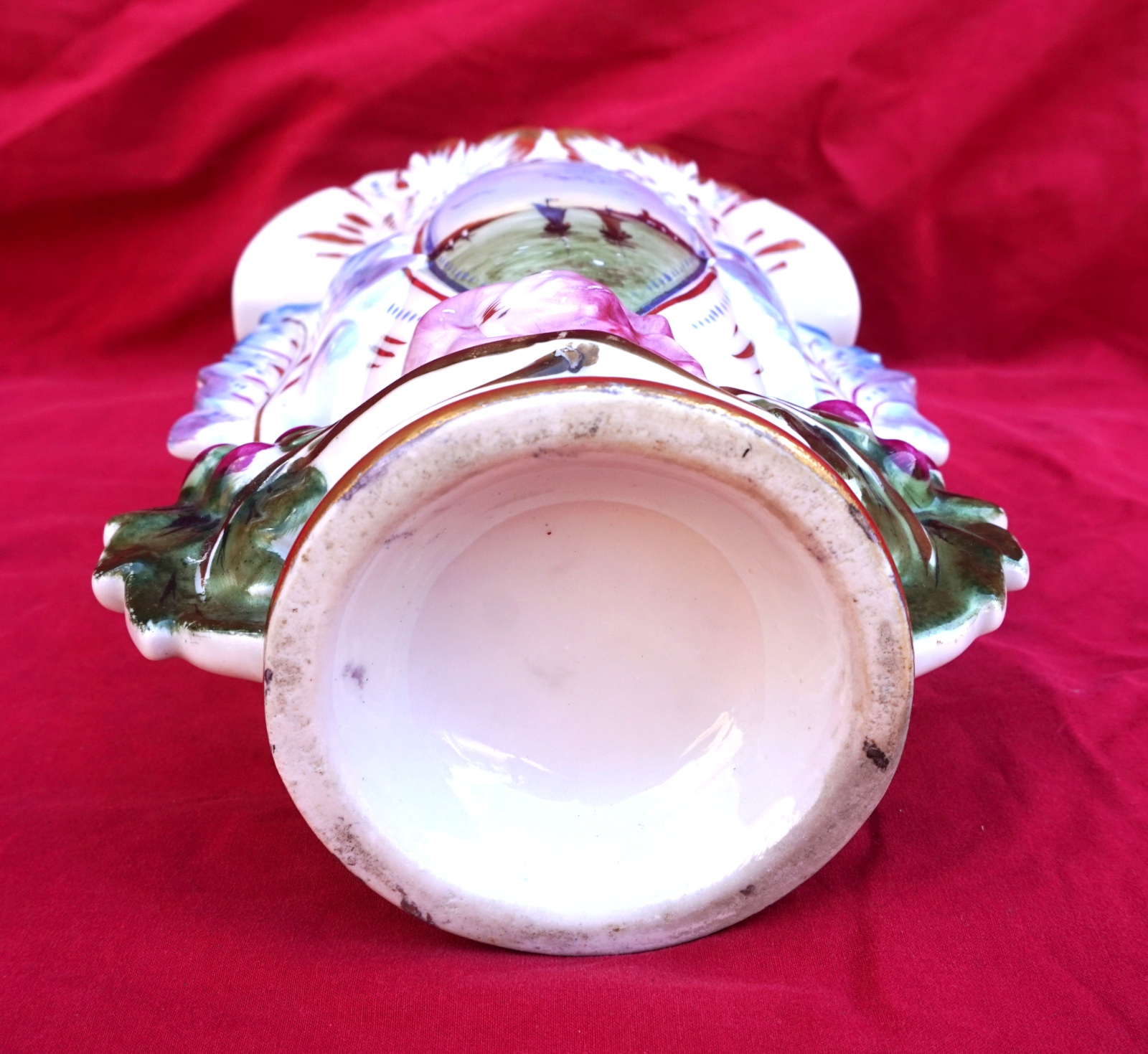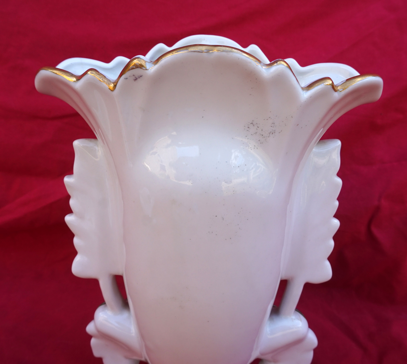 Vase de mariage en porcelaine de Paris peint à la main d'un décor de voilier en médaillon, fin XIXe siècle. Hauteur 21.5 cm, largeur 16 cm. Très bel état.