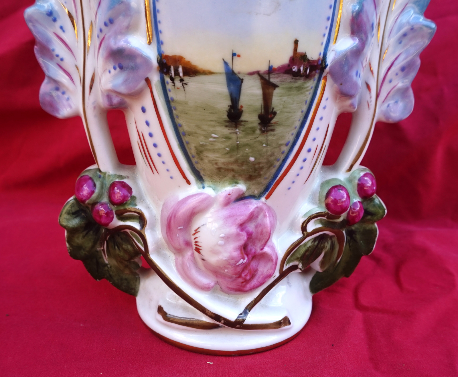 Hand Painted Gilt Porcelain Sailing Boats Medallion Wedding Vase Late 19th C