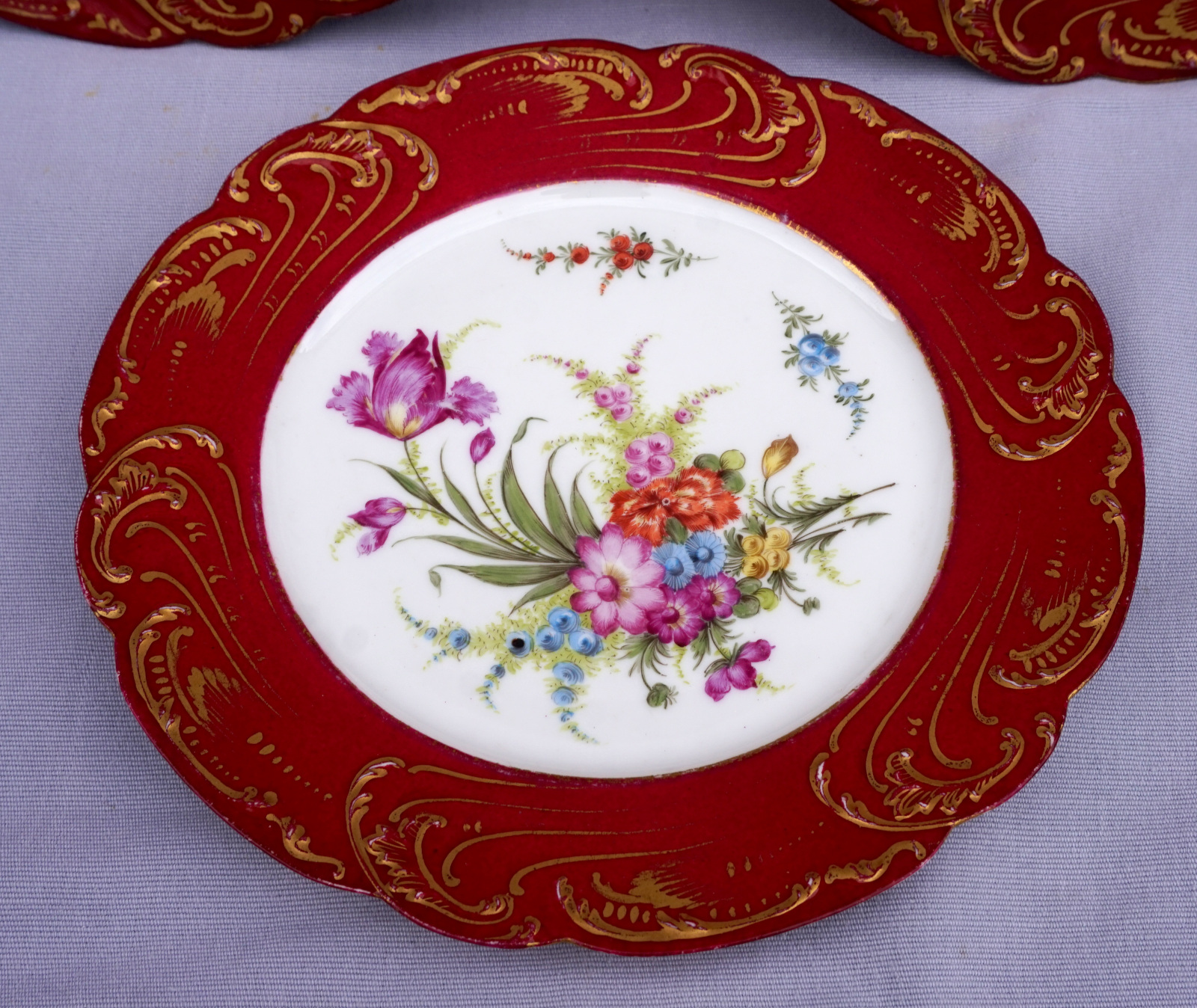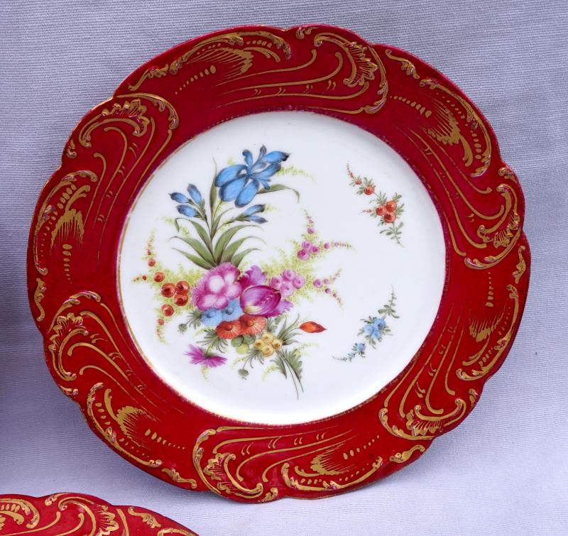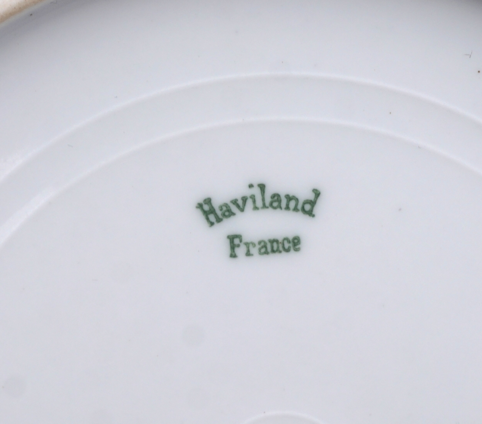 Trois assiettes en porcelaine peintes à la main de boiuquet de fleurs réhaussé or par Haviland Limoges vers 1900. Signé au dos. Diamètre 24.2 cm. Deux petites grénures au dos, une assiette en parfait état.