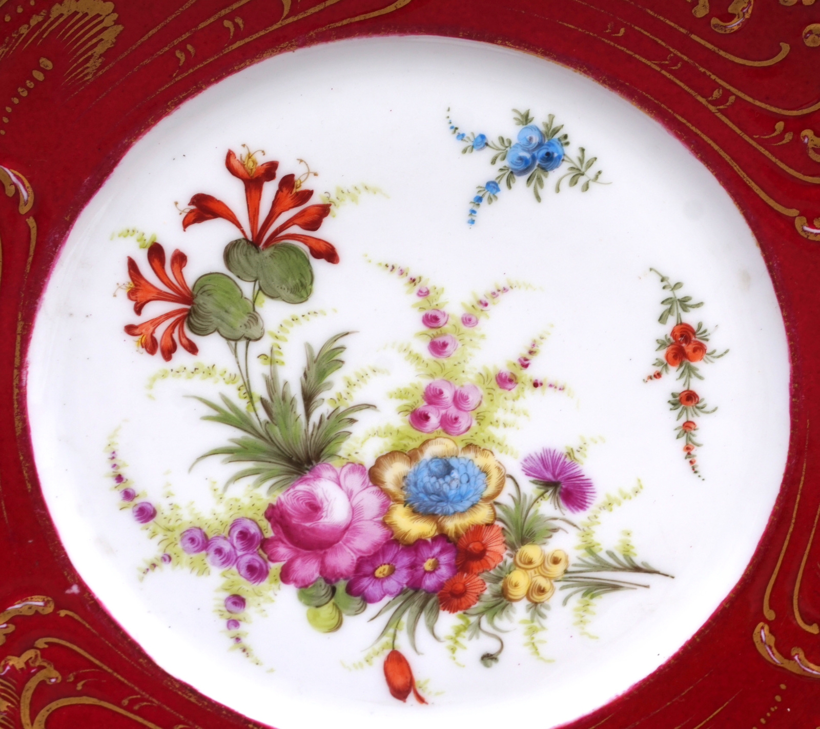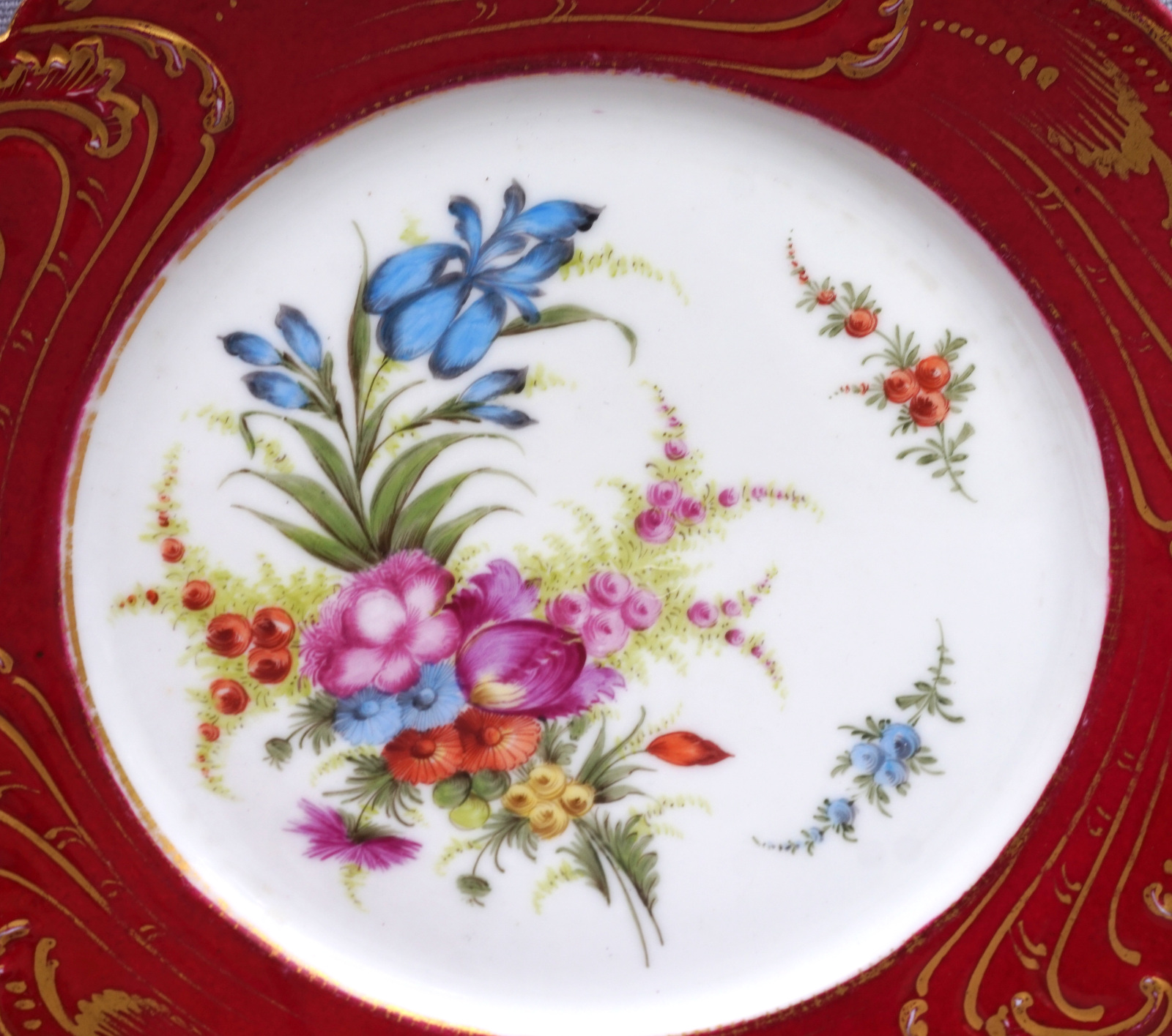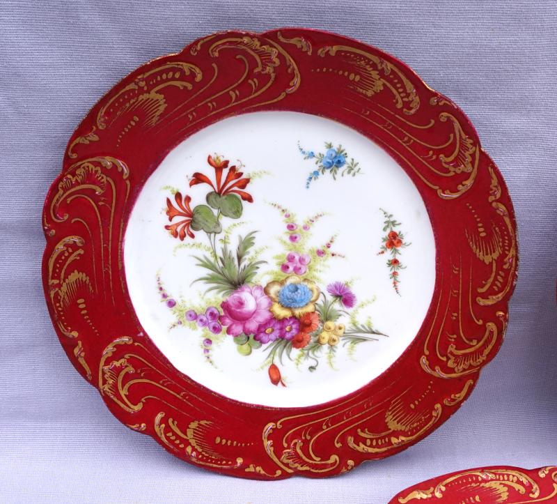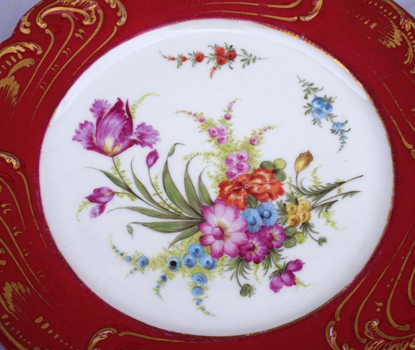 Trois assiettes en porcelaine peintes à la main de boiuquet de fleurs réhaussé or par Haviland Limoges vers 1900. Signé au dos. Diamètre 24.2 cm. Deux petites grénures au dos, une assiette en parfait état.