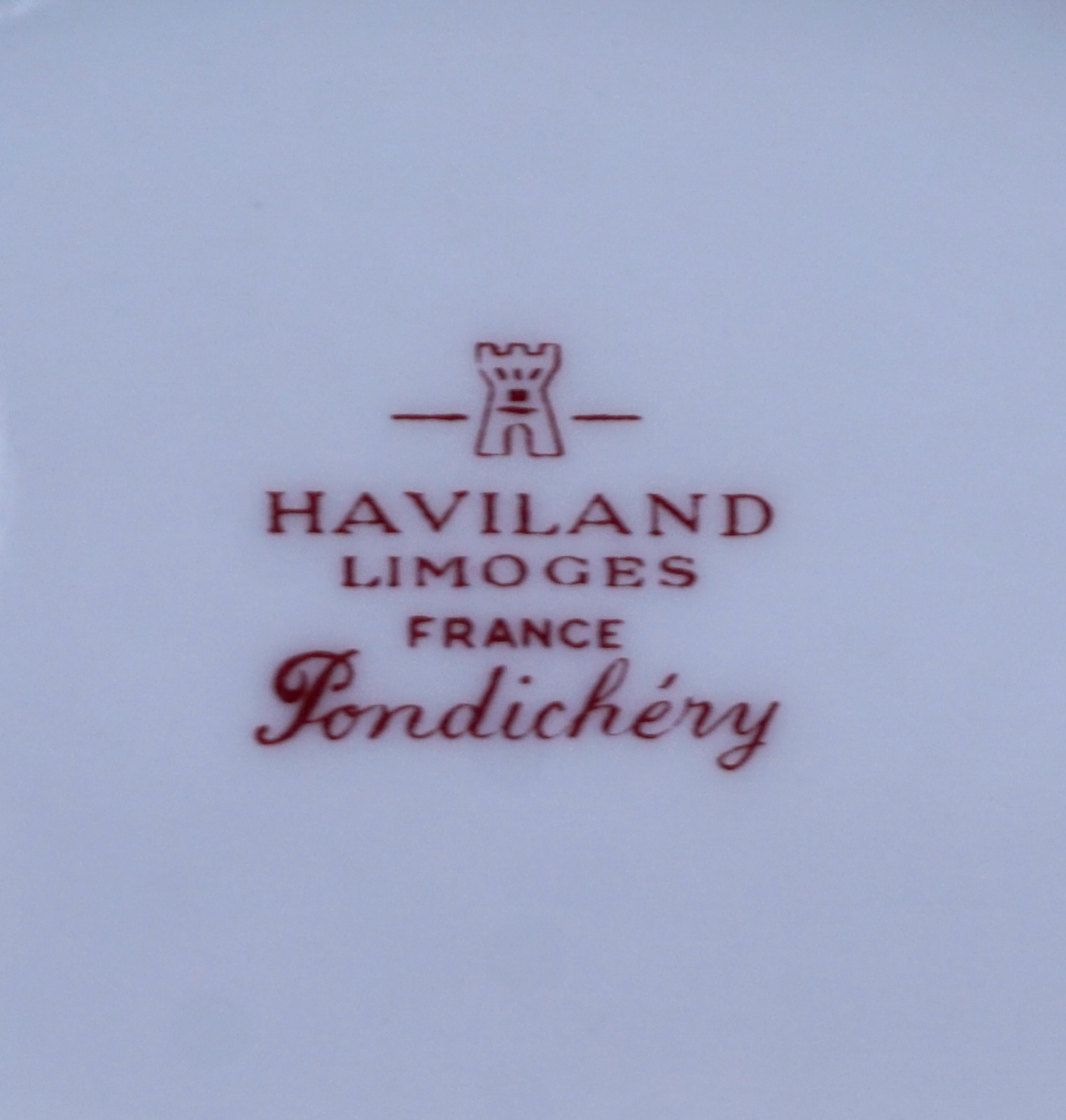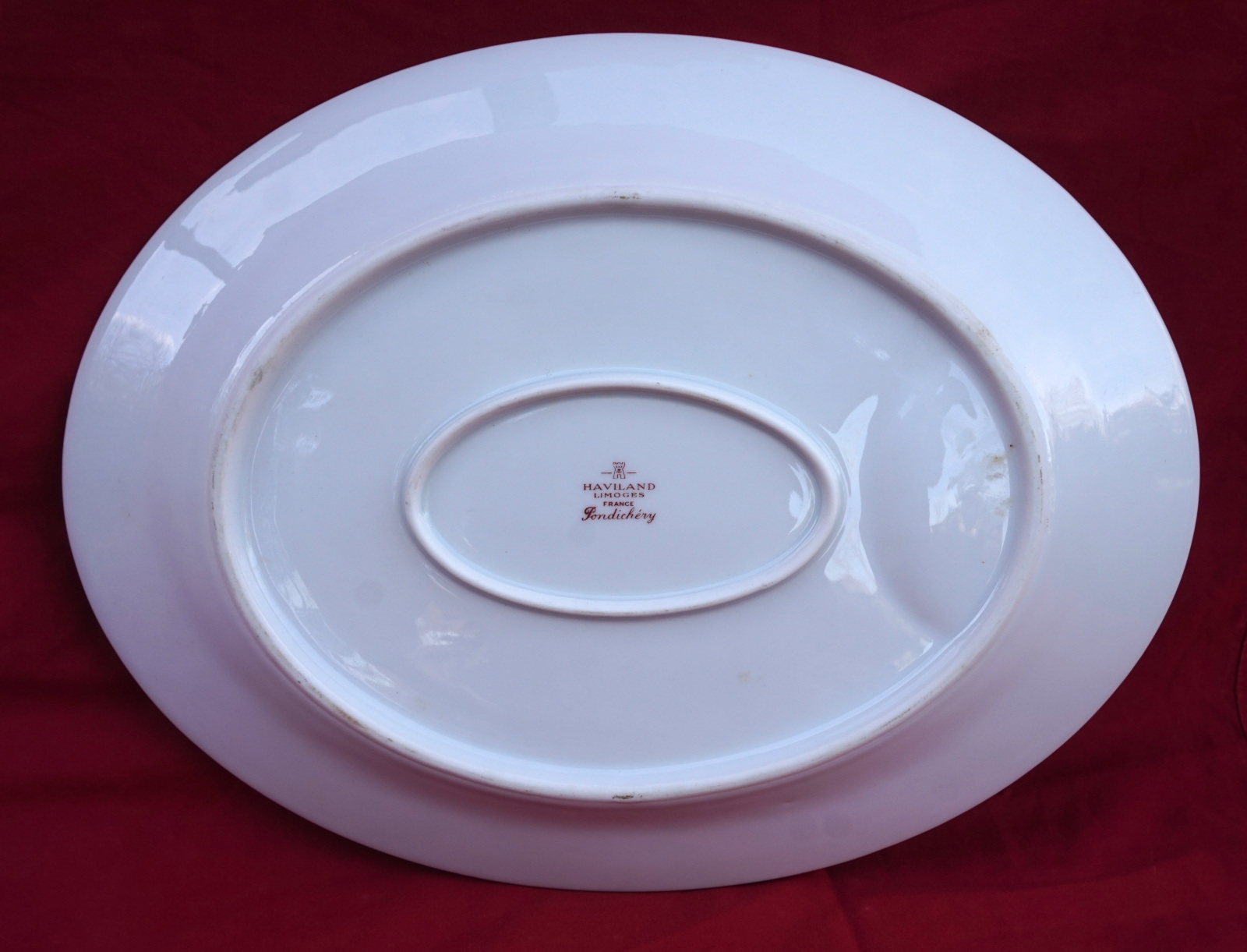 French Limoges porcelain oval roast serving dish Pondichery pattern made by Haviland in Limoges. It's signed on the back. 13 5/8" (34.5cm) length, 10 1/2" (26.7cm) width. Perfect condition as shown by the following pictures.