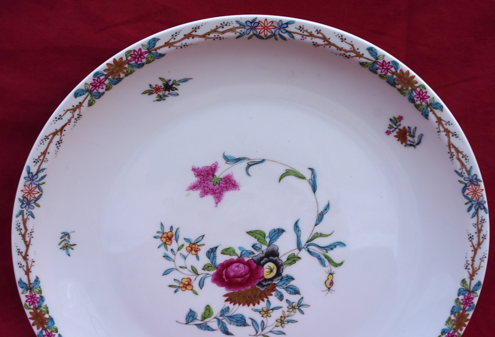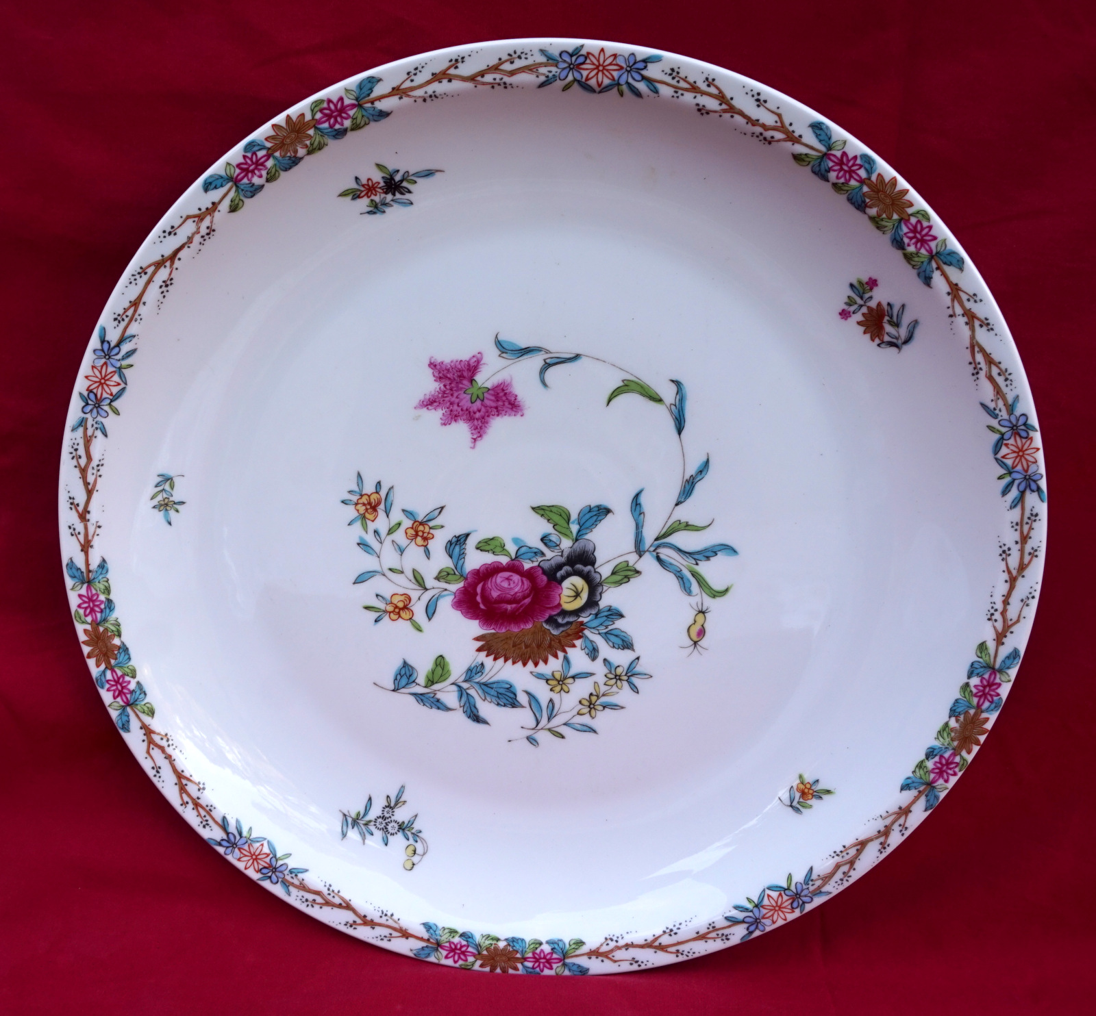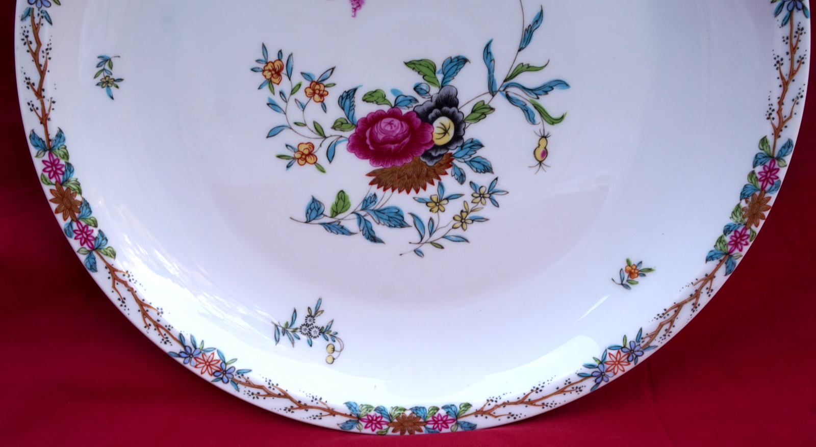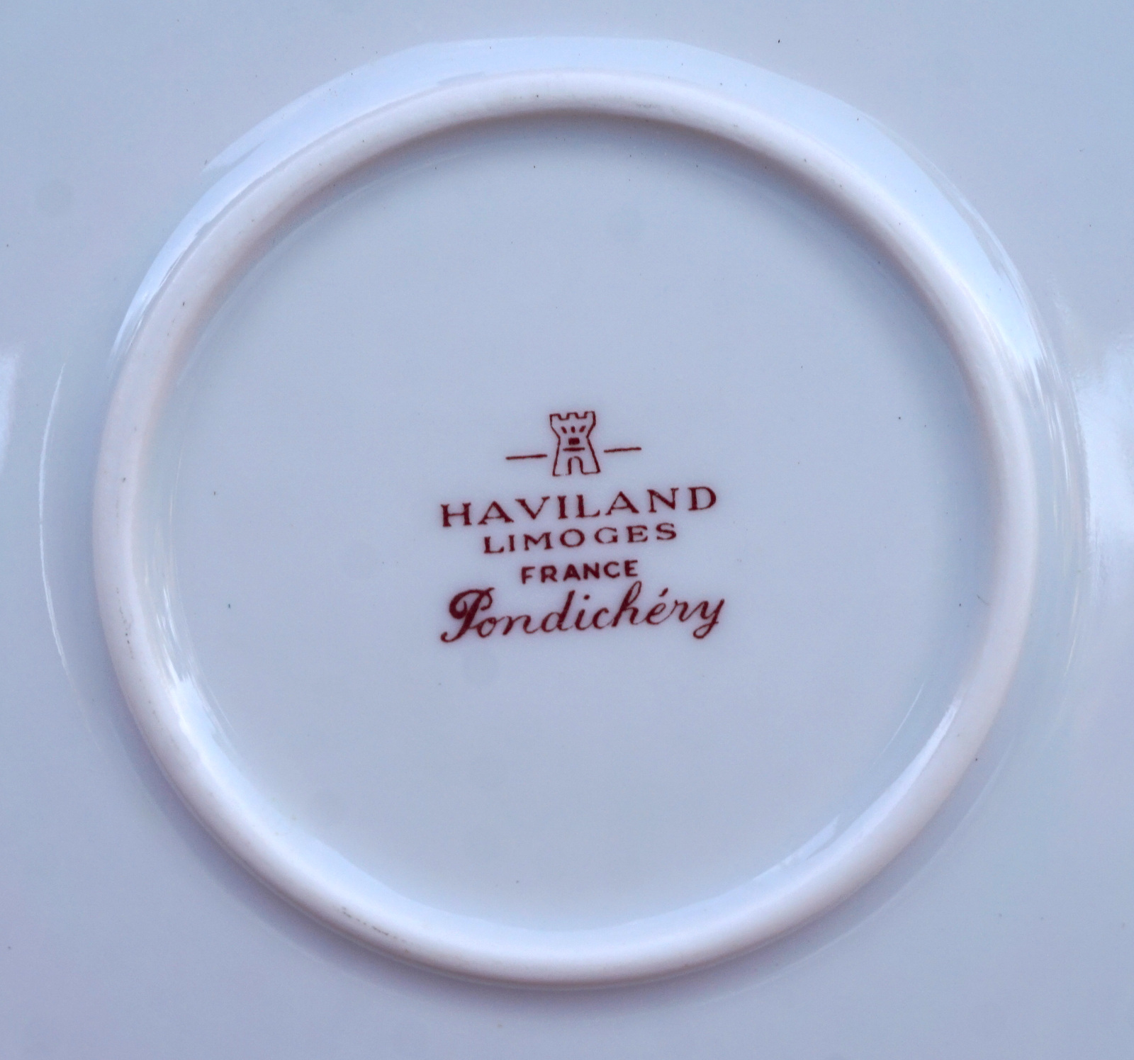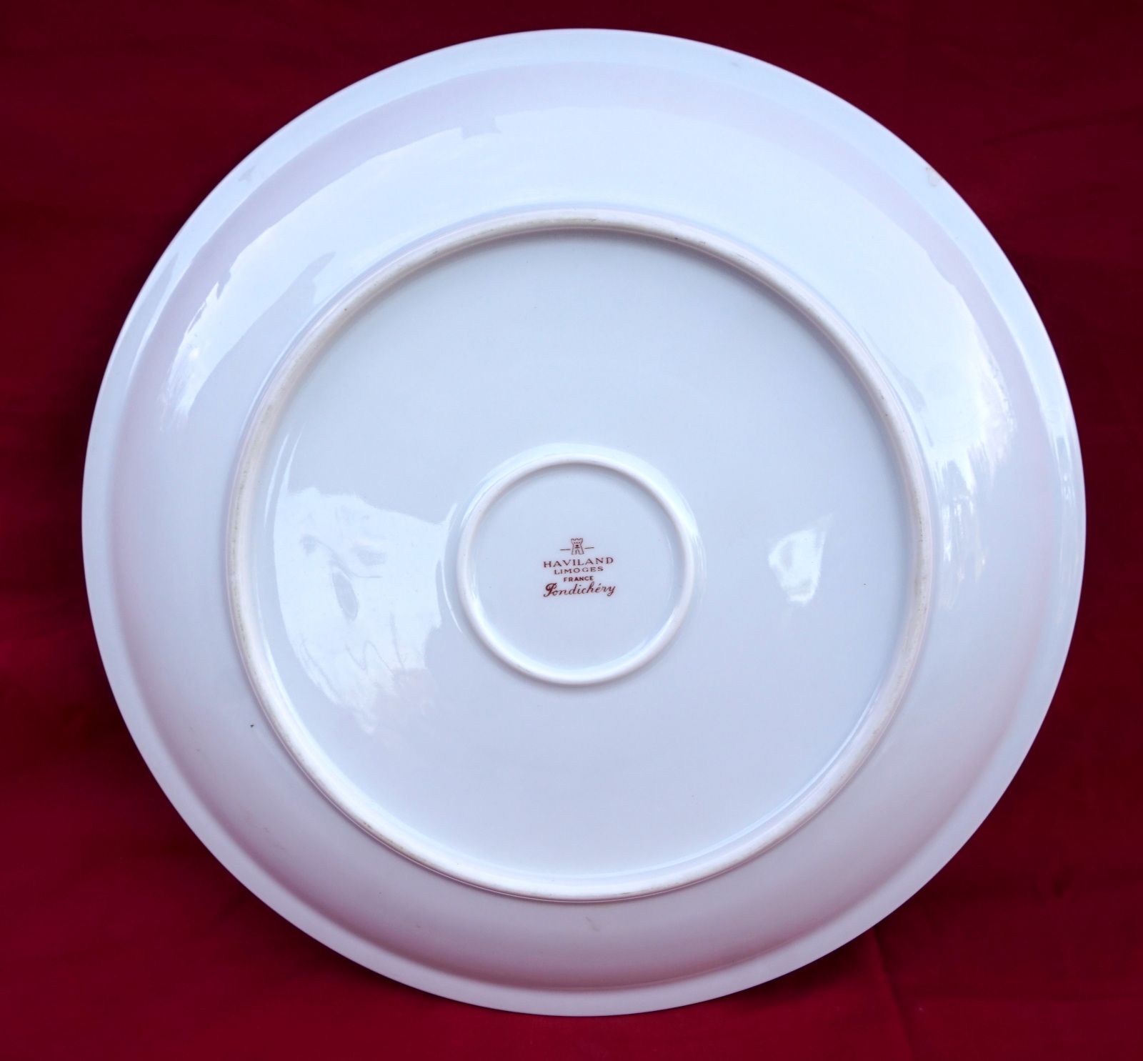 French Limoges porcelain round serving dish Pondichery pattern made by Haviland in Limoges. It's signed on the back. 12 1/2" (31.7cm) diameter. Perfect condition as shown by the following pictures.