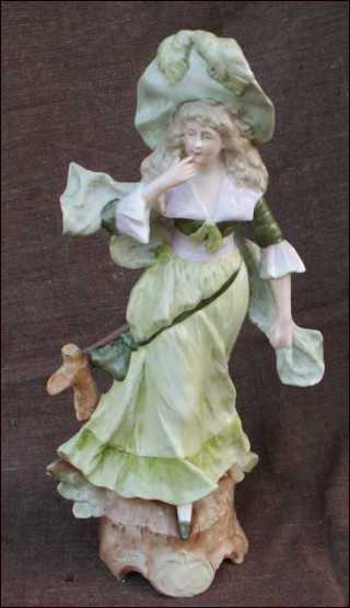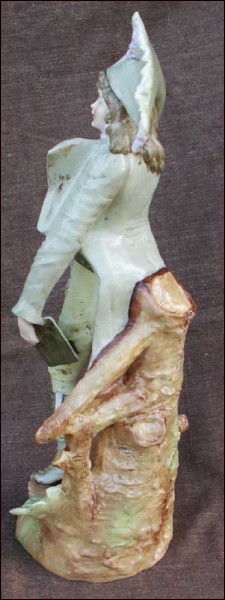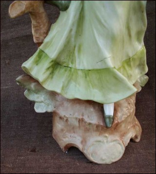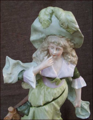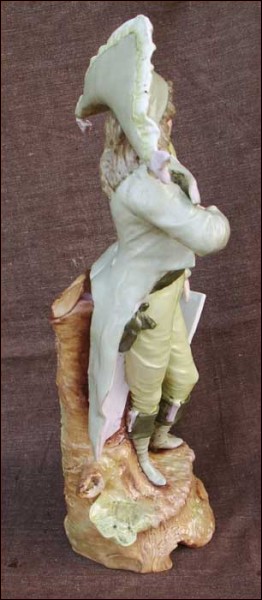 Annette and Lubin large 19" figures in german porcelain 19th century from the drawers of François Boucher. The figures are molded with hard glaze inside with 8121 stamped for the model with 31 for the girl and 12 for the boy sculptor mark. The boy is also signed "M as" in red for Mascret et 7 in green. Perfect condition no repairs, no hairlines, only one chip on the dress of Annette below her right hand as you can see on the last picture below. 19" tall.