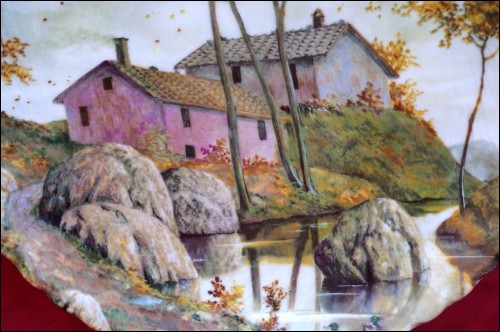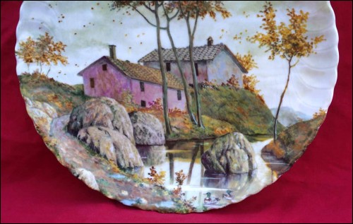 LIMOGES France House River Hand Painted Porcelain Plate Early 20th C