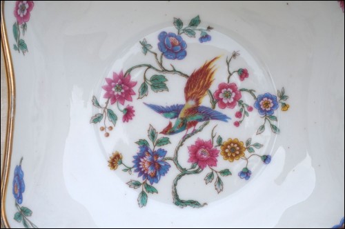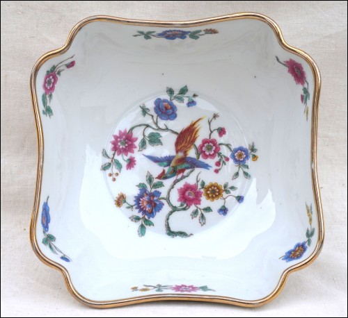 LIMOGES UC Porcelain Salad Fruit Square Bowl Bird Paradise Gilt