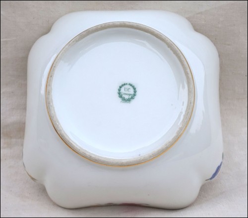 Vintage salad fruit square dish in transferware gilt porcelain showing bird of paradise and flowers made by UC Limoges during the 20th century. It's signed on the back. 7 1/2" (19cm) by side 3 1/8" (8cm) height. Perfect condition as presented on the following pictures.