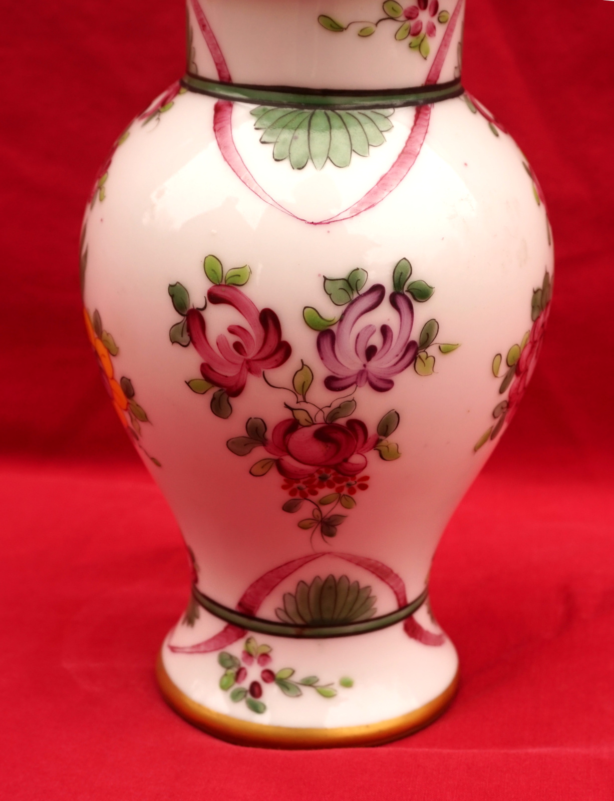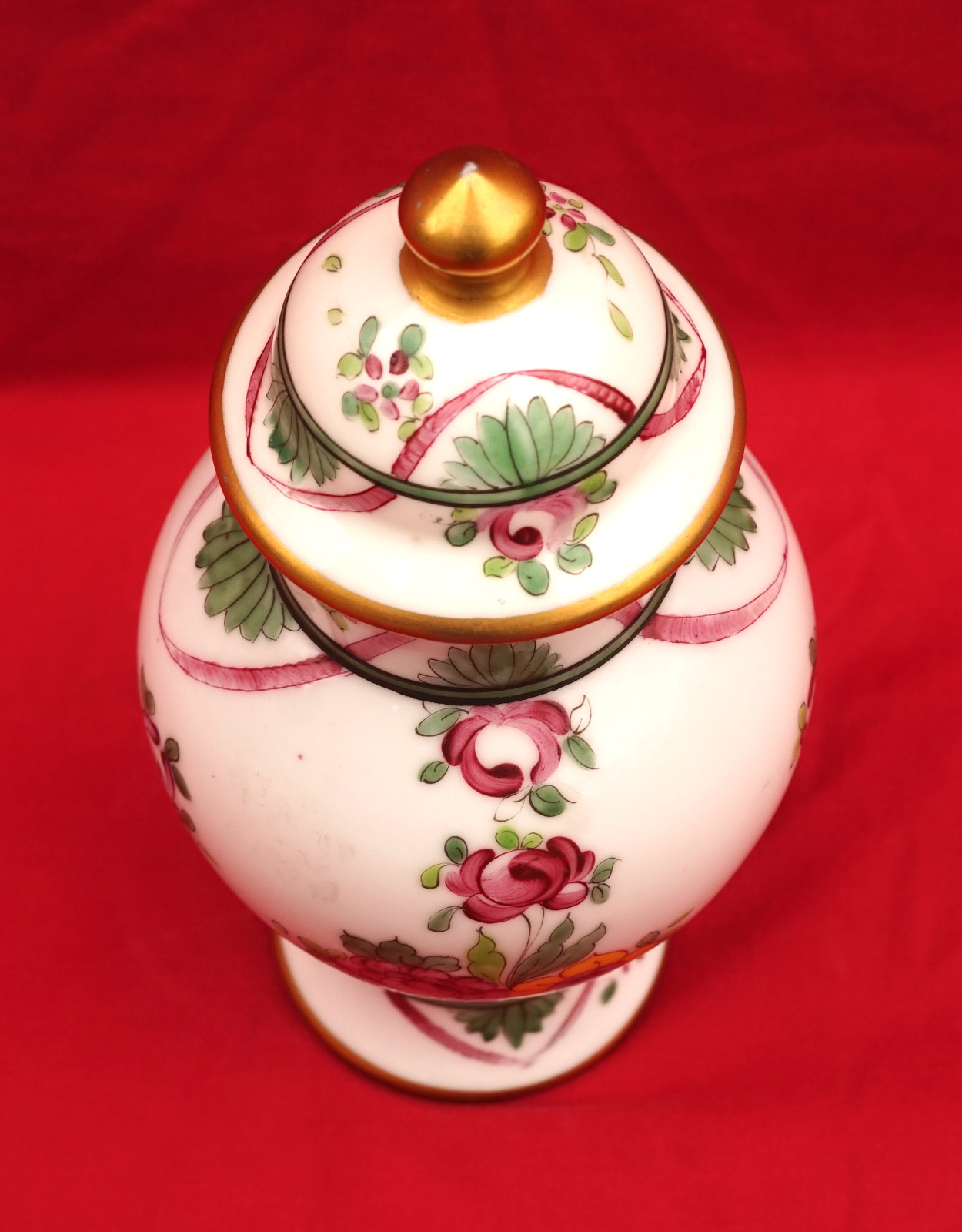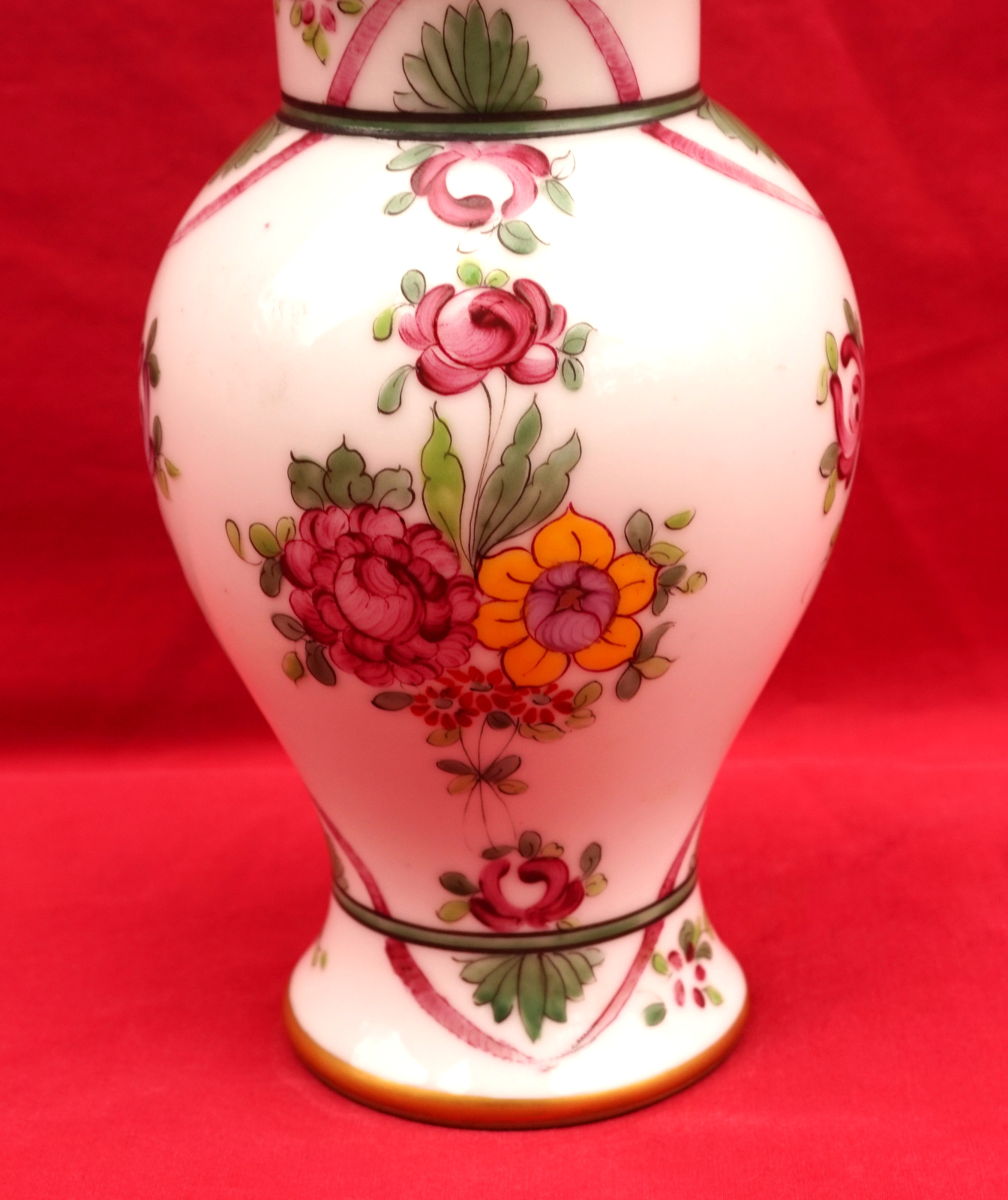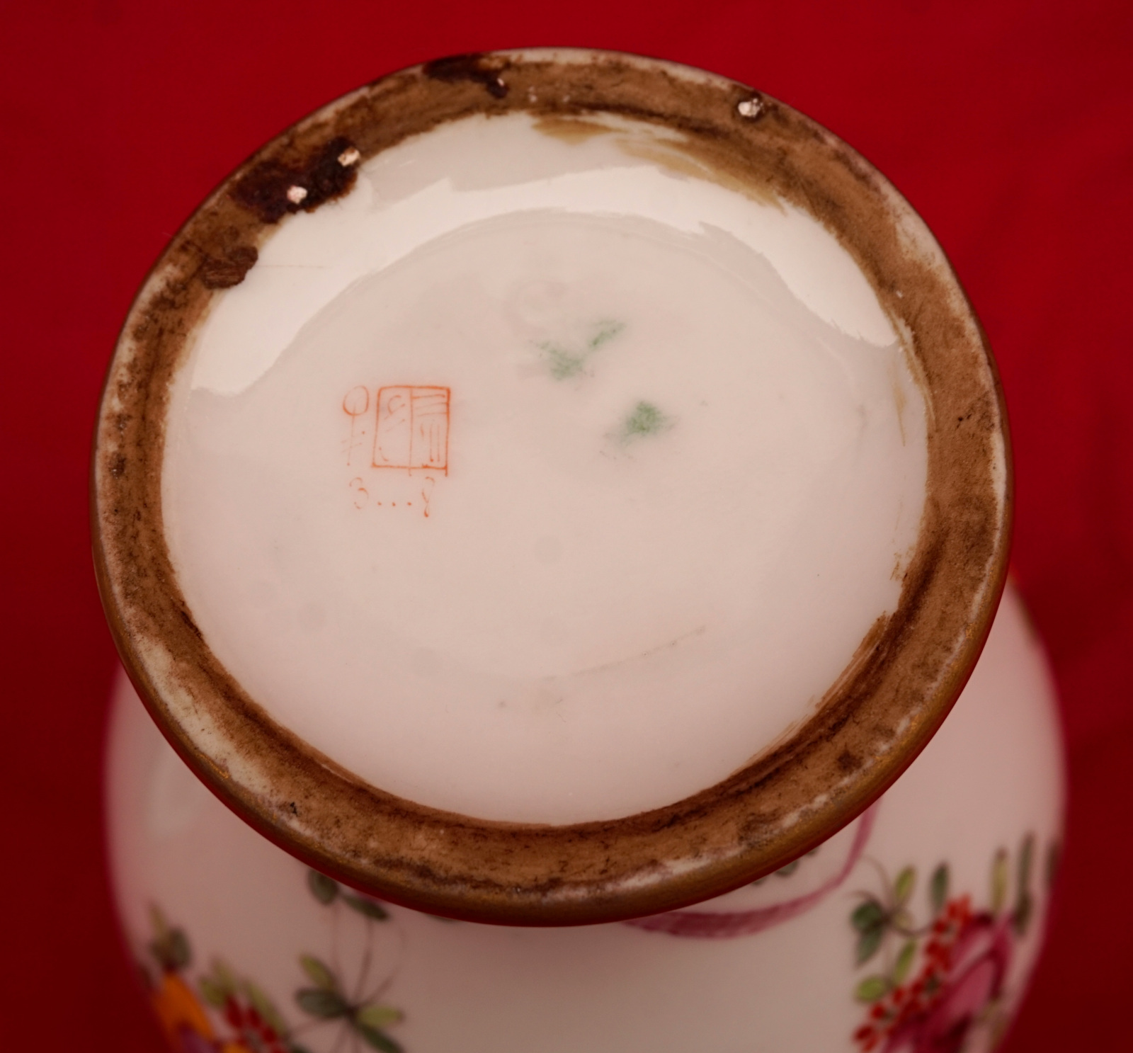 Pot à couvercle en porcelain peinte à la main d'un décor floral Samson Paris fin XIX° siècle. Signé sur son fond. Hauteur 19.1 cm, diamètre au corps 9 cm. Très bel état.
