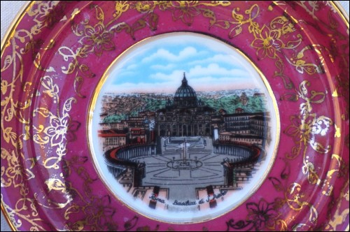 Porcelain Red Gold Roma Trevi Fountain St Peter's Basilica Cup Saucer