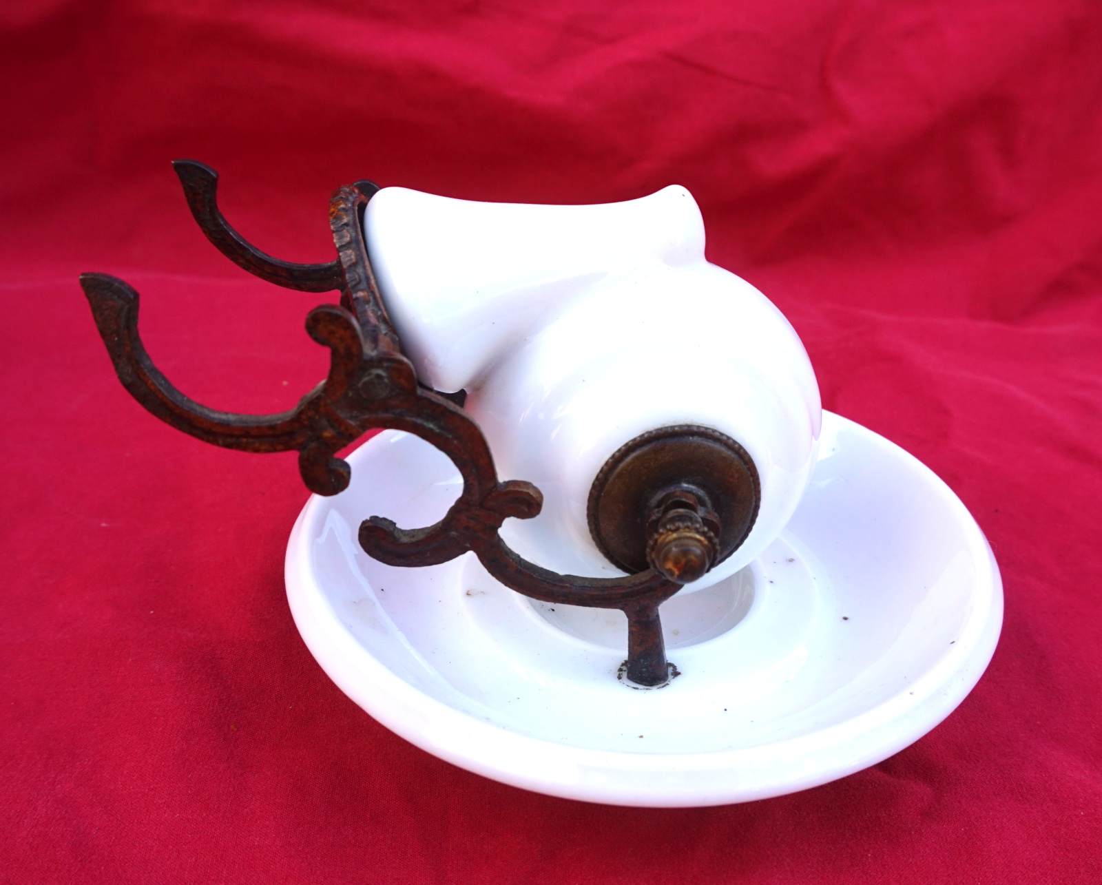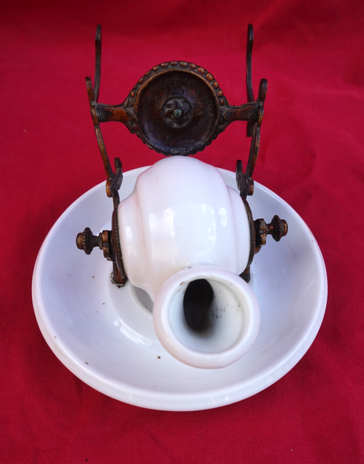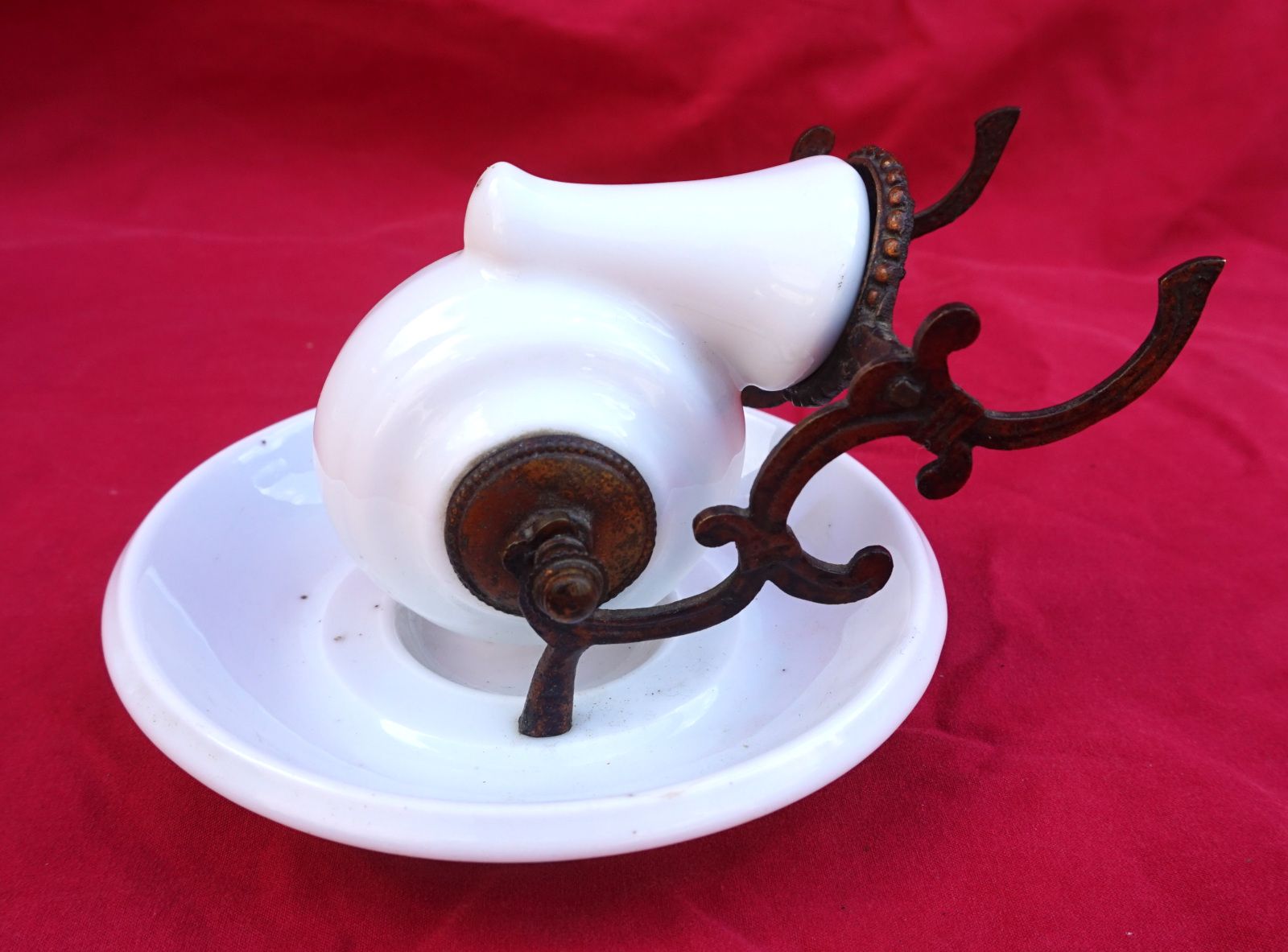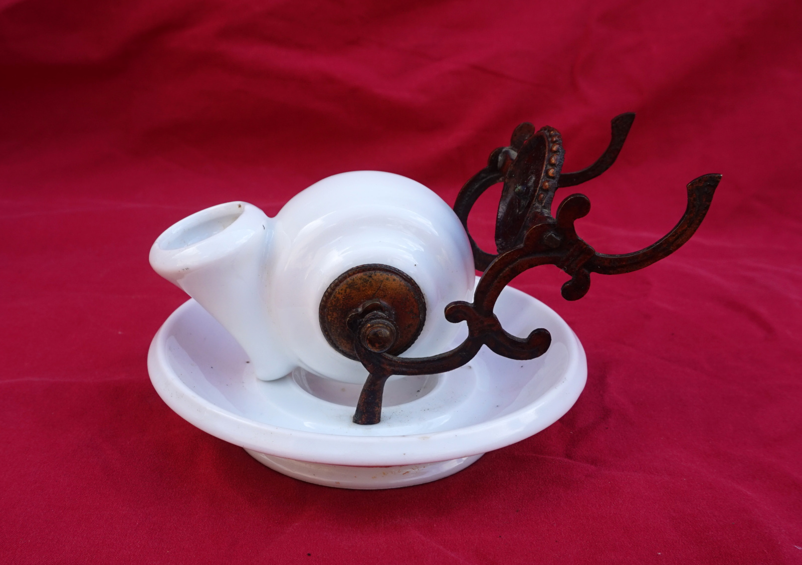 Snail Shaped Rotating Inkwell Pen Holder Porcelain Brass Late 19th C