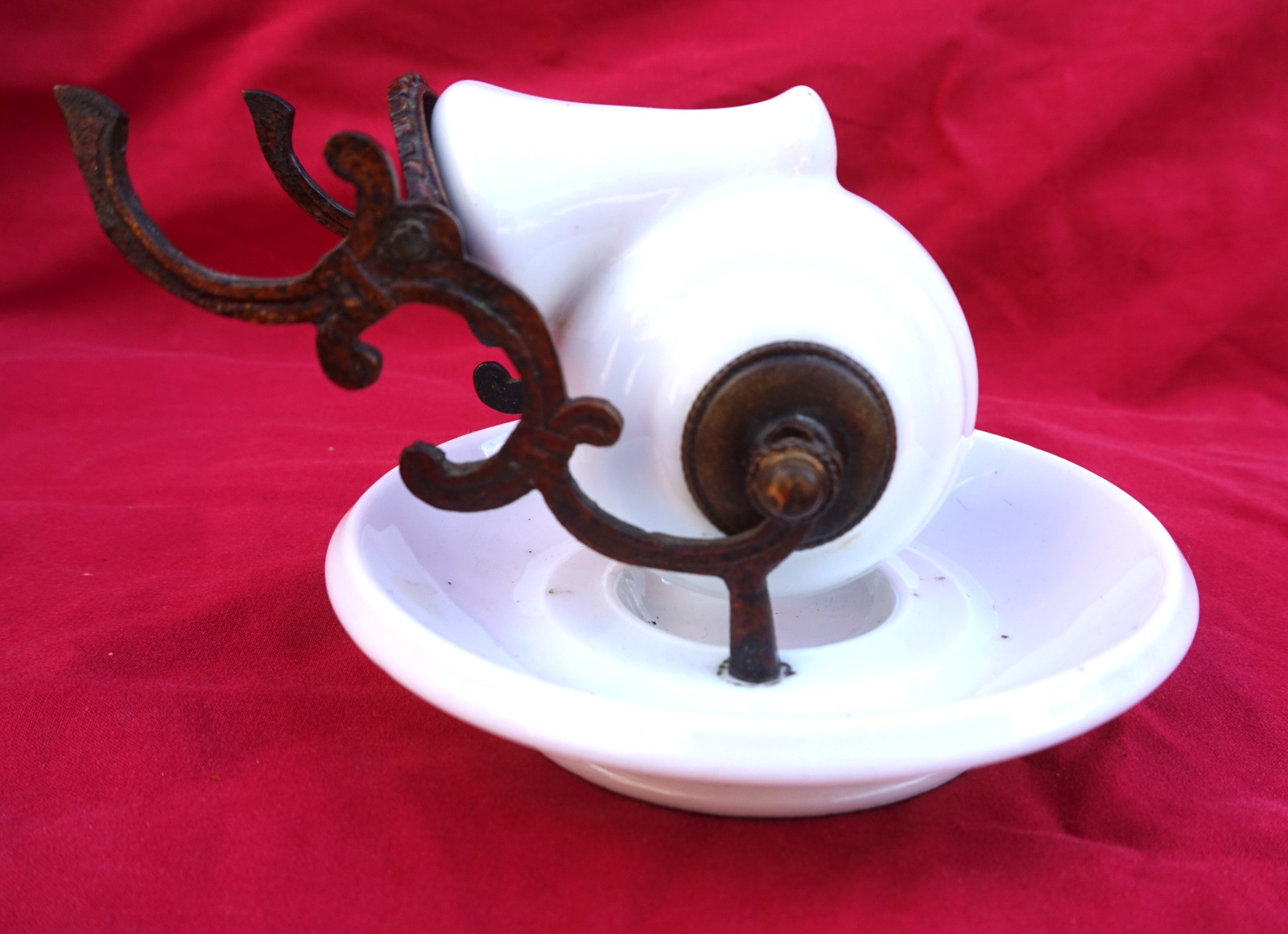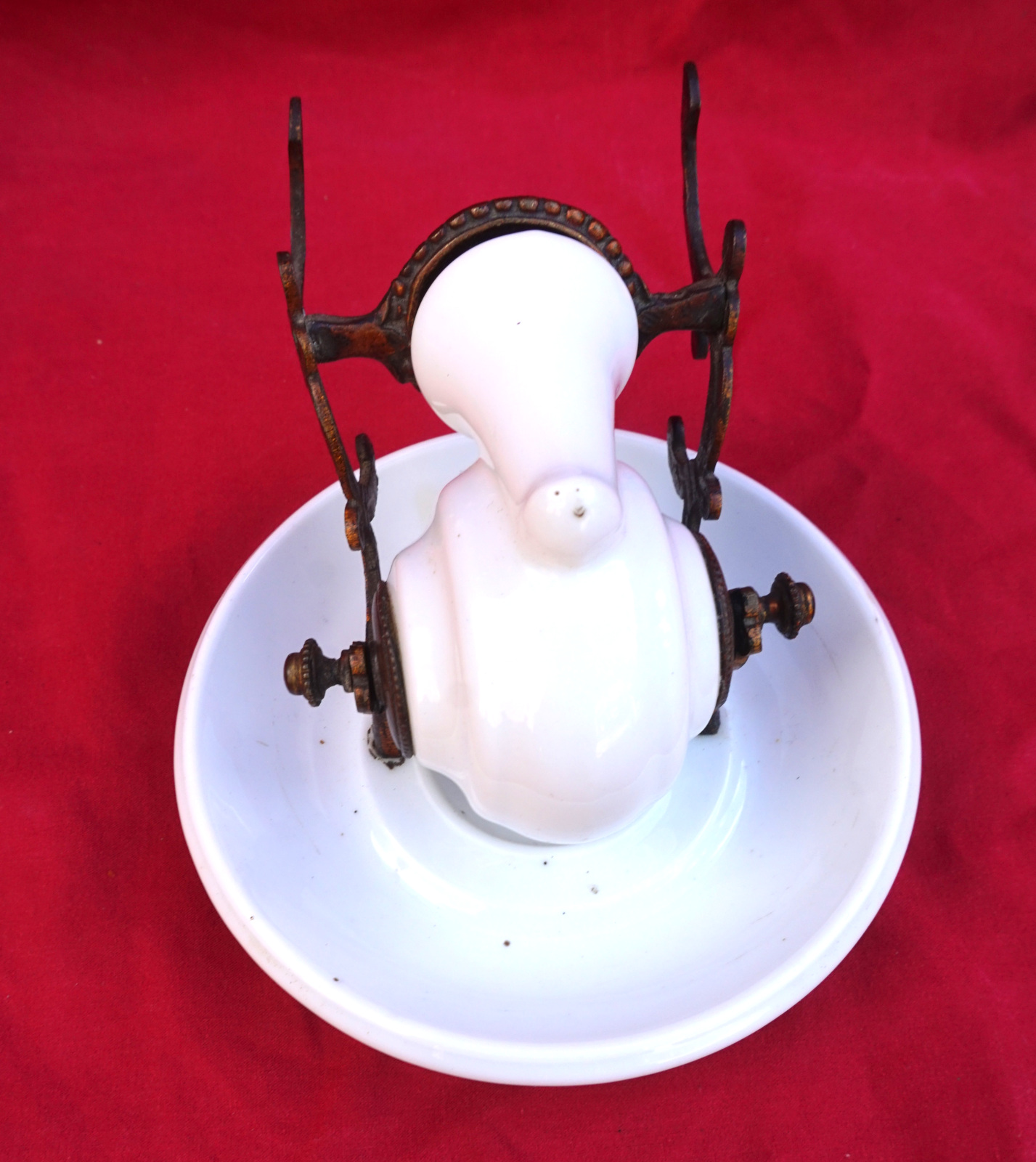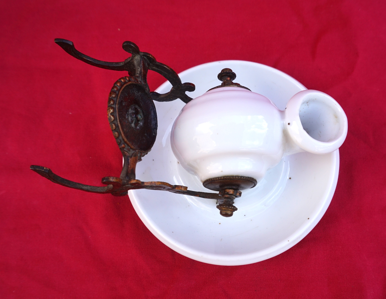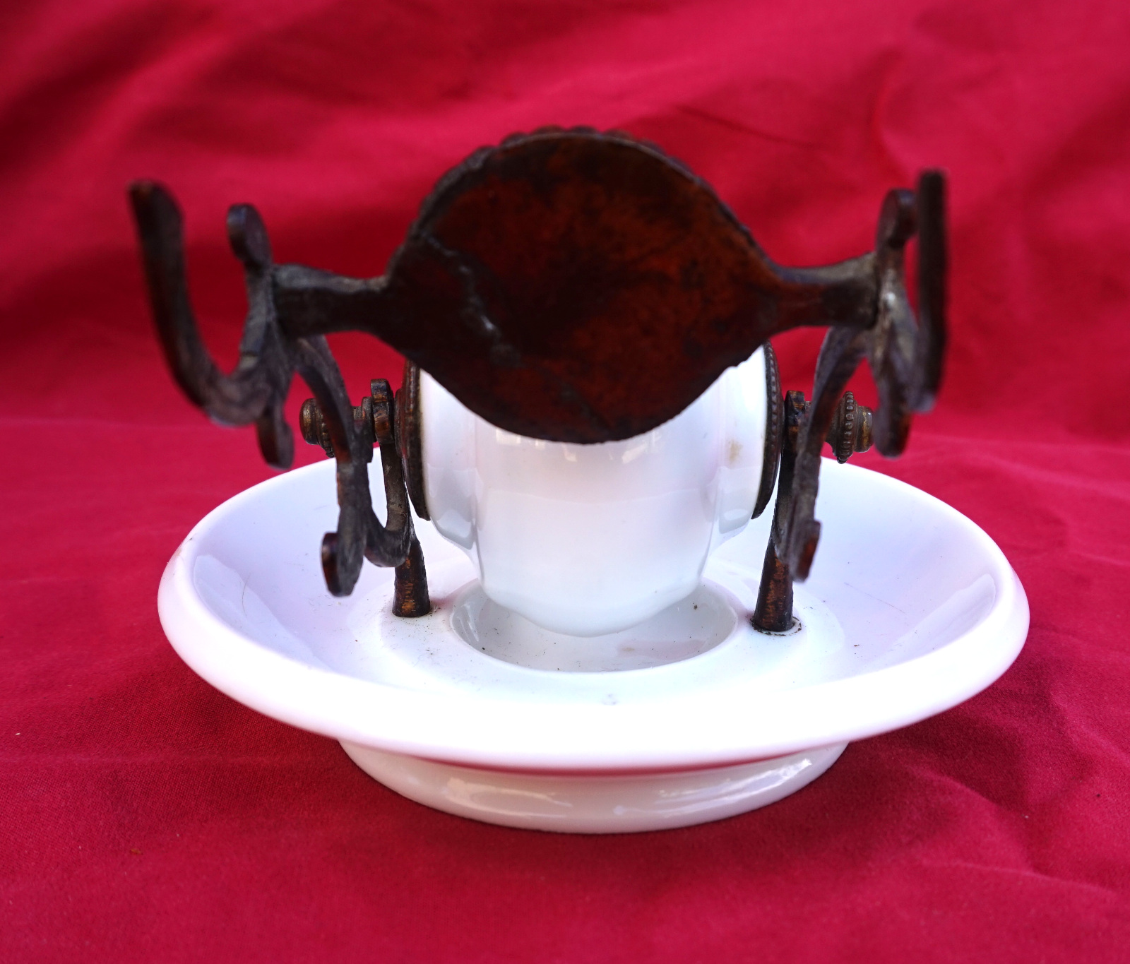 Snail Shaped Rotating Inkwell Pen Holder Porcelain Brass Late 19th C