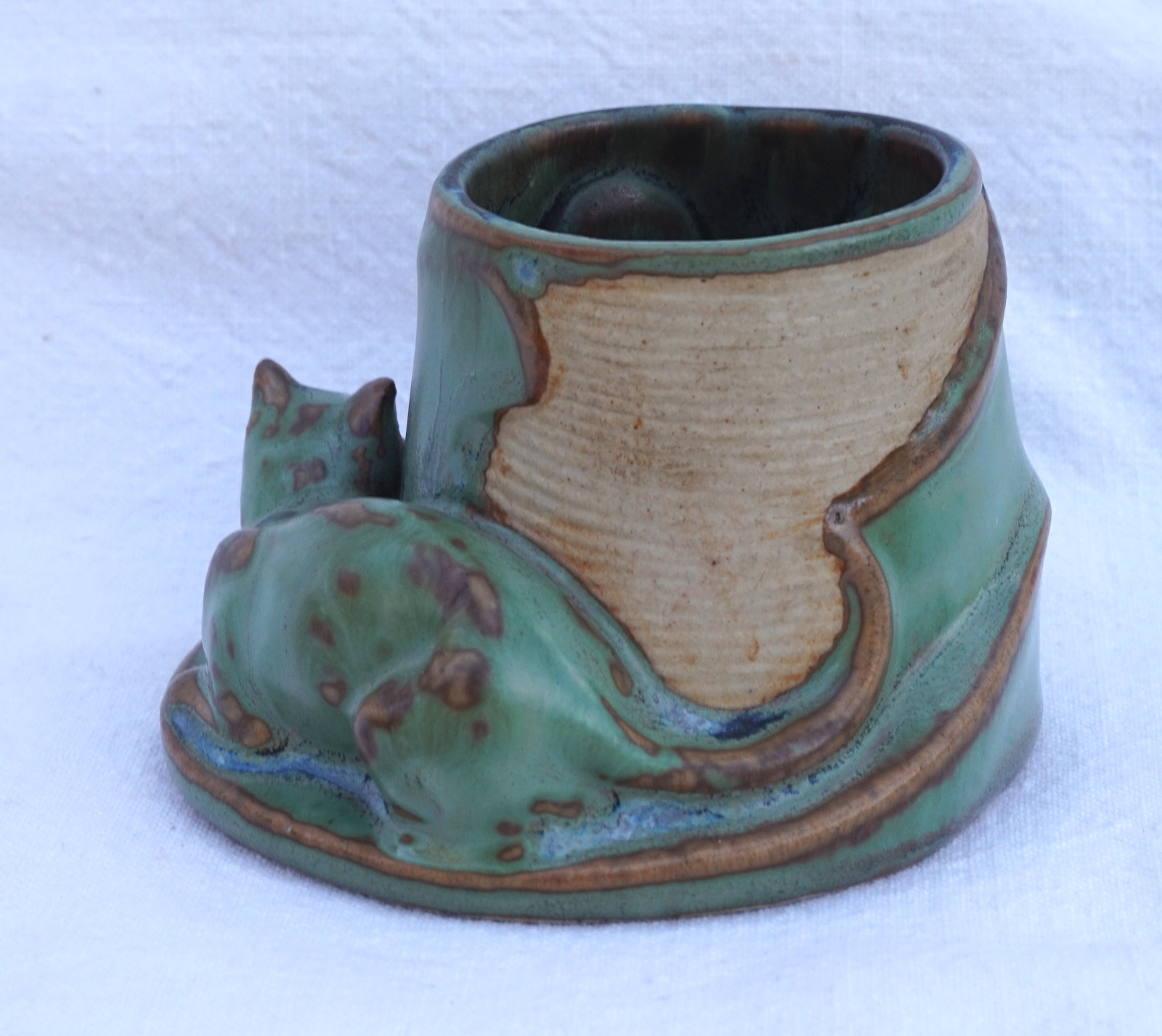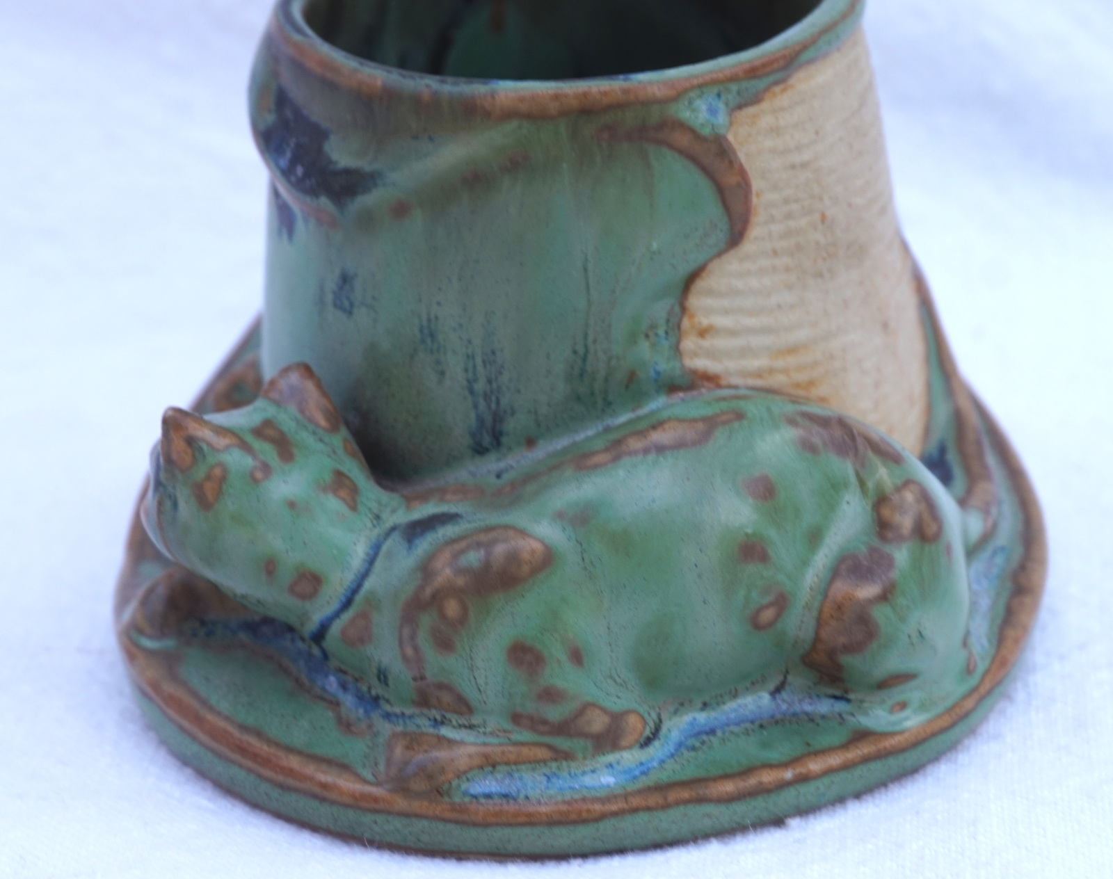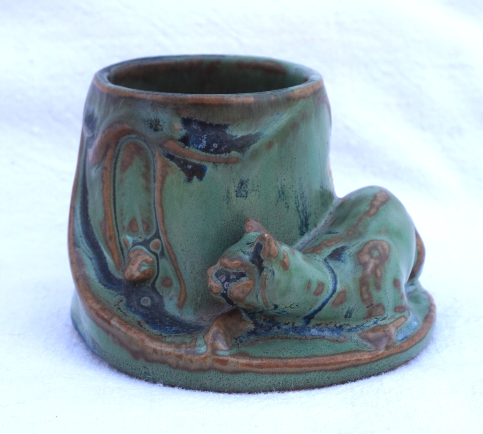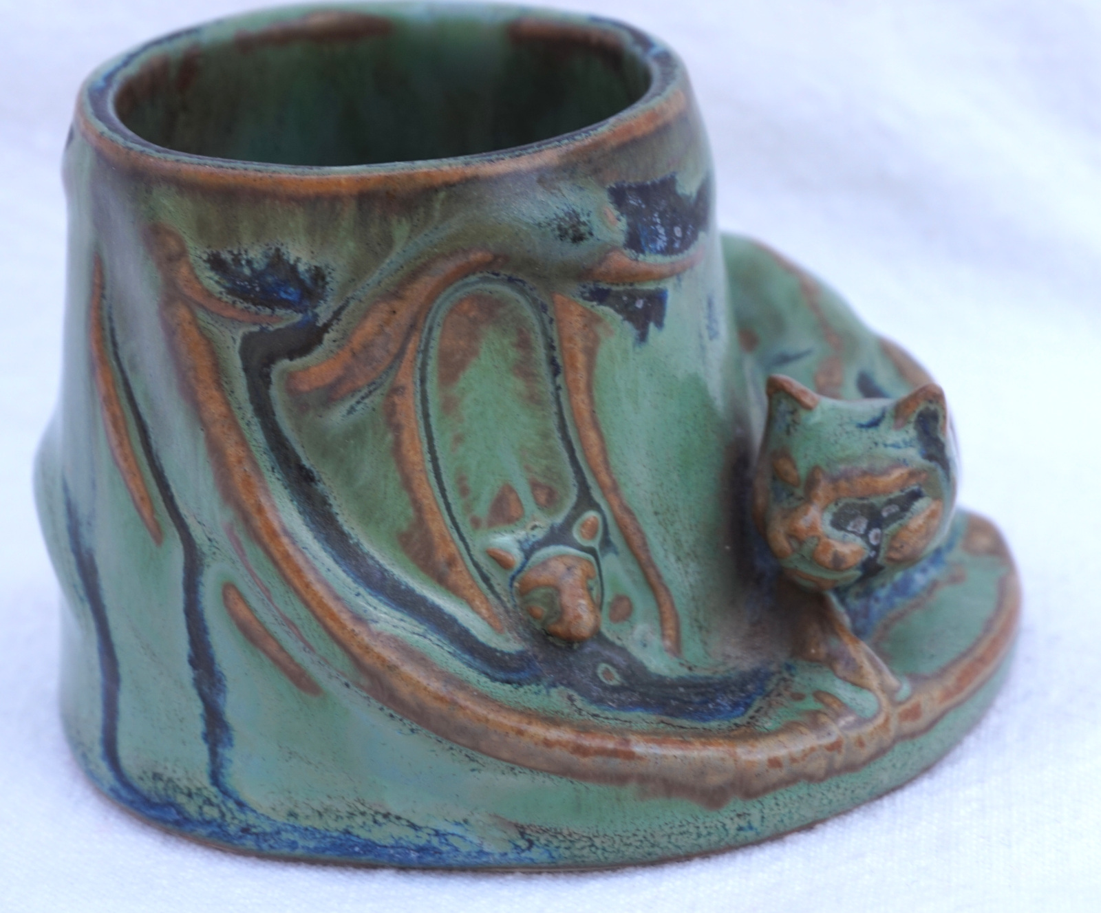 Art Nouveau Denbac Cat Mouse Pyrogene Stoneware Match Striker Holder