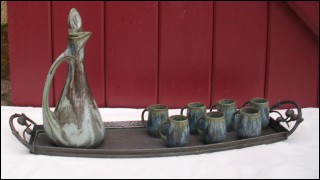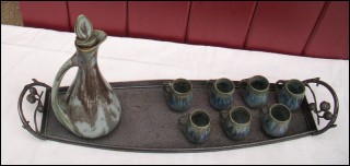 Arts and Crafts Pottery Liqueur Set by DENBAC Vierzon 1925