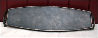 Service à eau de vie en grès émaillé de bel qualité est dans de joli ton d'écume de mer. Il est composé d'un pichet et de sept gobelets avec son plateau d'origine en métal blanc. Il est né vers 1925 de la Société Denert et Balichon, à Vierzon (inscrite à la Chambre de commerce le 6 janvier 1921). C'est la contraction des deux noms qui donne naissance à la signature Denbac. Le pichet est en parfait état et signé sur le fond de la marque en noir model n°124. Les gobelets signés en creux, en parfait état aussi, sont du model n°191 du catalogue. Hauteur du pichet 22 cm, diamètre du pichet 9.3 cm, hauteur des gobelets 5 cm, diamètre des gobelets 3.5 cm, pour le plateau : largeur 47.5 cm; profondeur 12.5 cm.
