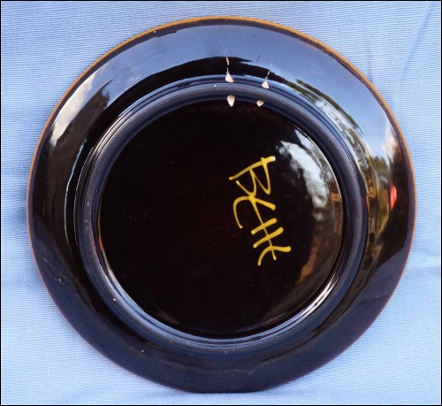 Assiette en faïence peinte à la main d'un décor de chandeleur, Alfred Beer à Herblingen Suisse, vers 1970. Elle est signée sur son fond. Diamètre 20.8 cm. Parfait état.