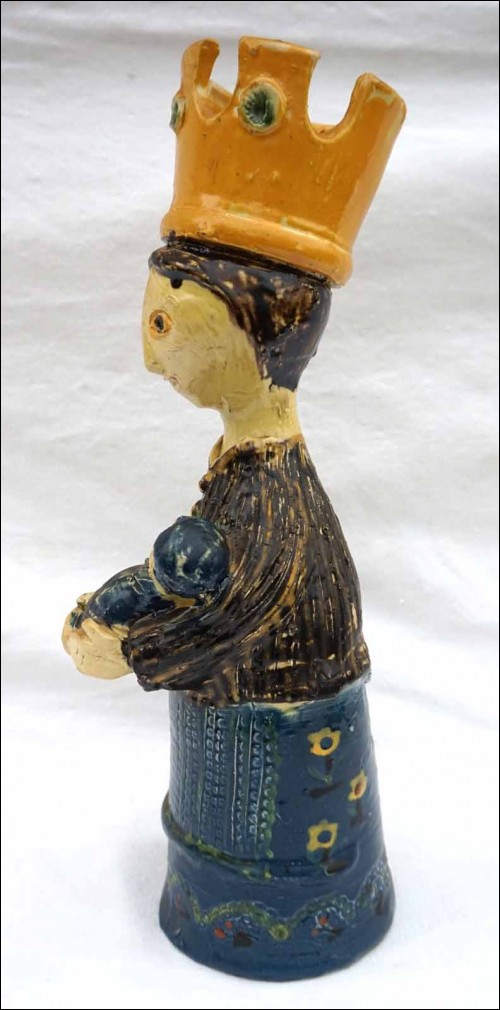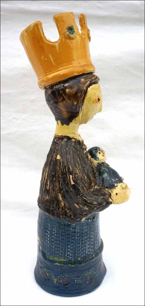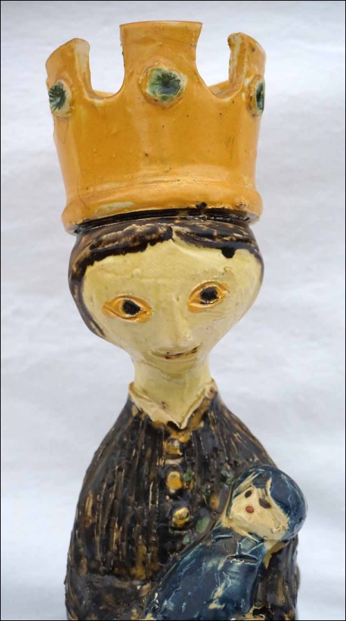 Crowned Virgin Mary w Jesus Child Folk Art Pottery St Jorioz Annecy A
