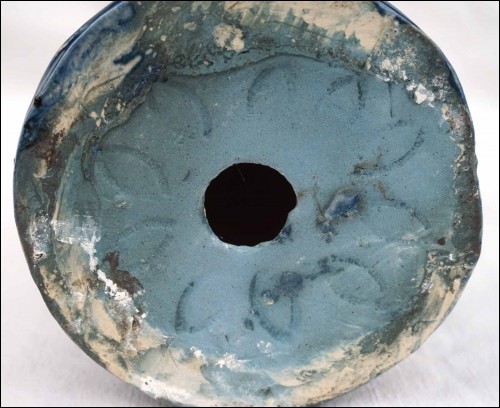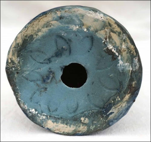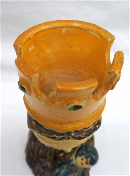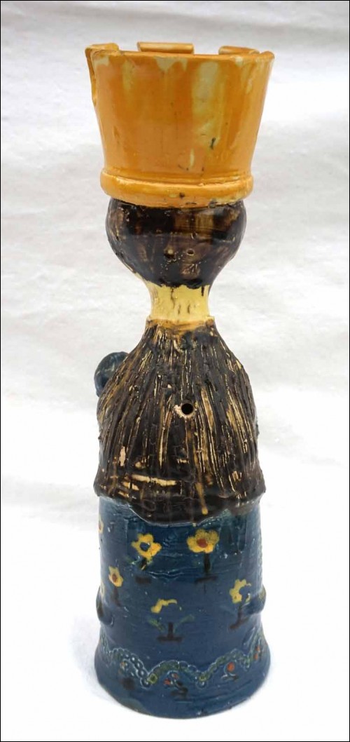 French folk art pottery crowned Virgin Mary with Jesus Child made by St Jorioz near Annecy french Alps. She is signed on the bottom. 14" (35.5cm) tall, 4 3/8" (11.2cm) diameter to the base. Perfect condition as shown by the following pictures.