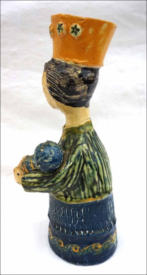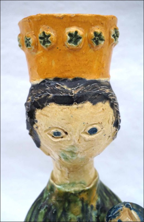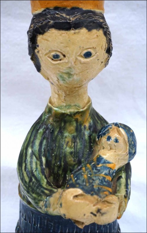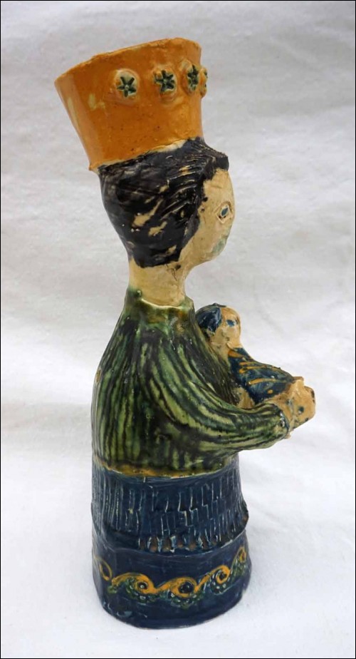 Crowned Virgin Mary w Jesus Child Folk Art Pottery St Jorioz Annecy B