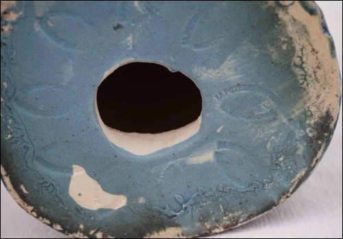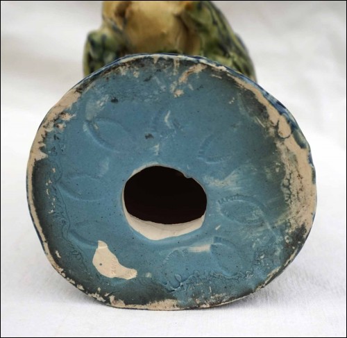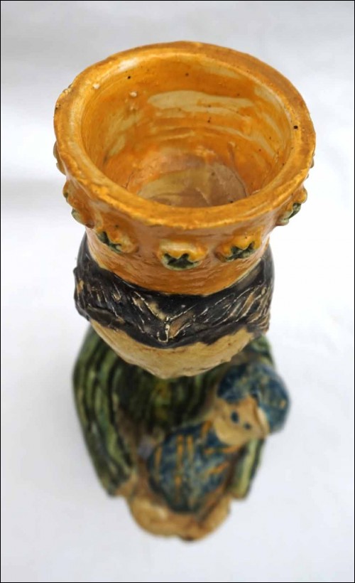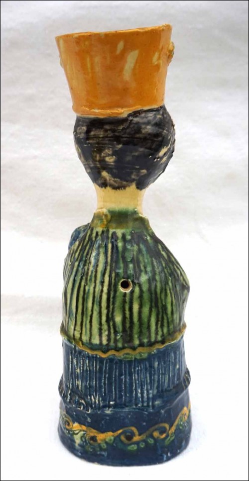 French folk art pottery crowned Virgin Mary with Jesus Child made by St Jorioz near Annecy french Alps. She is signed on the bottom. 11 3/8" (29cm) tall, 4 5/8" (10.8cm) diameter to the base. Perfect condition as shown by the following pictures.