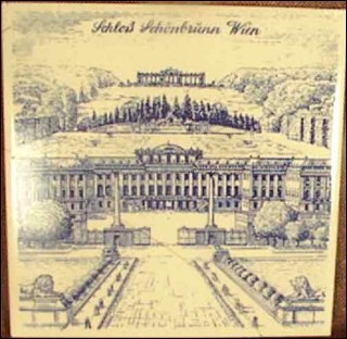 This decorative tile showing the Schonbrunn castel has been made in the Vienna manufacture around 1964.6" by 6". Not in good condition it has been glued.