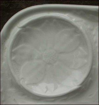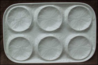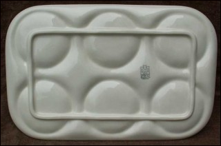 Plat pour le service des artichauts en faïence de la célèbre manufacture de Gien. Il est à six compartiment pour recevoir les légumes. Largeur 23.5 cm, longueur 36 cm.
