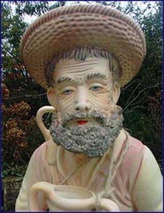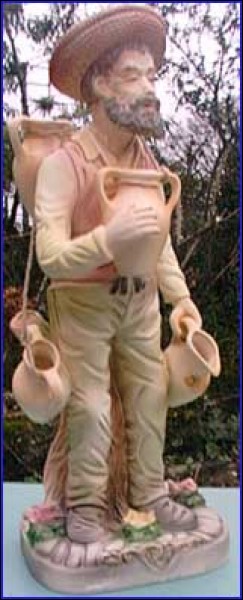 Marchand de pots en terre cuite peinte à la main de Marseille. Il est né vers 1960 dans les ateliers de santons provençal. La dureté de son métier se lit sur son visage. Il est en parfait état. Hauteur 49 cm.