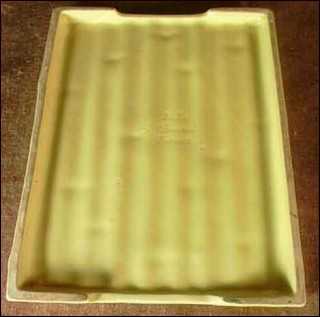 Table mat or Cheese dish with Bamboo trompe l'oeil made by the famous St Clement factory about 1960. 10"5/8 length 8"2/8 width 2"1/2 hight. Impressed on the back 247L for the model and St Clement France. Perfect condition.