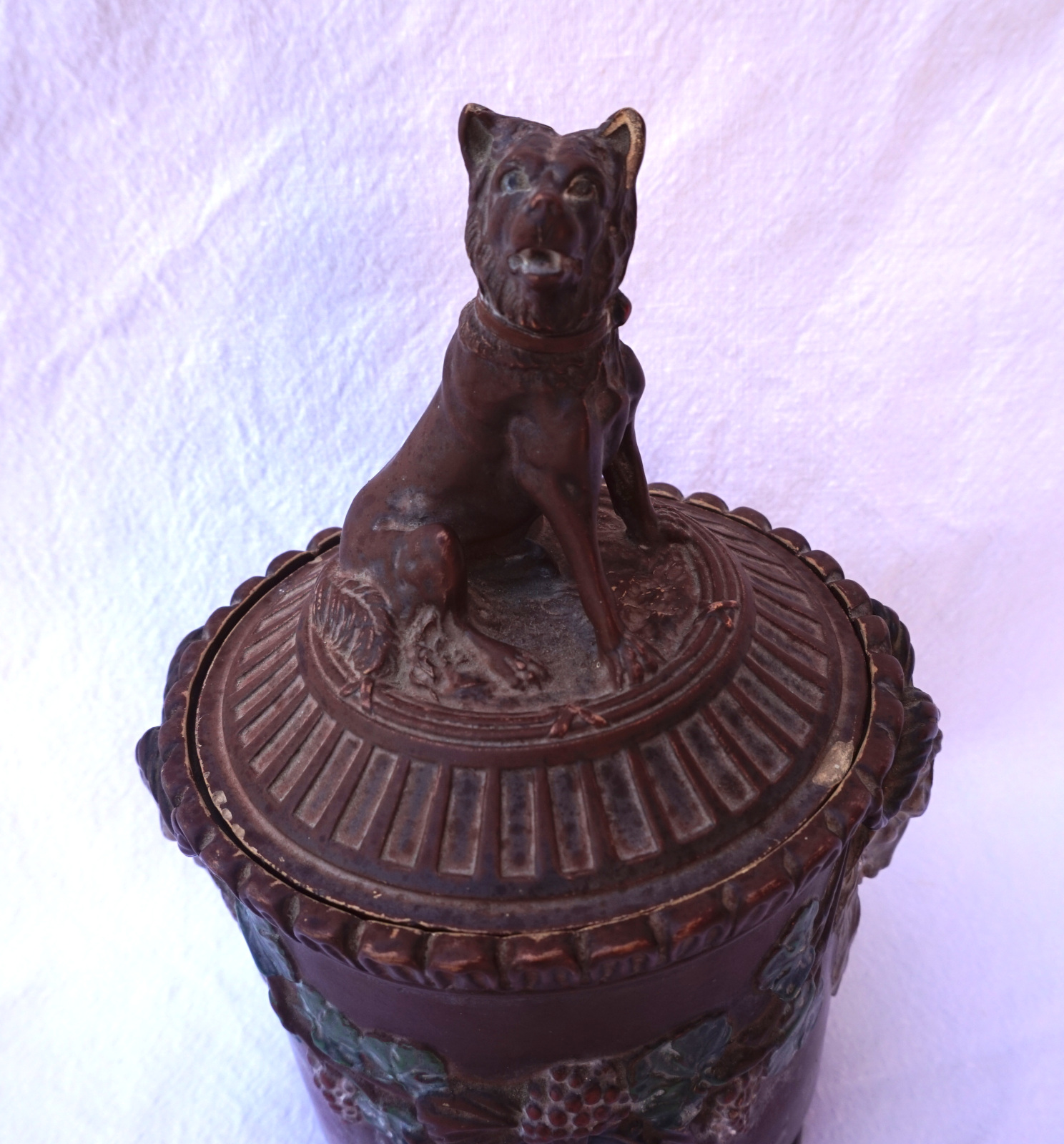 Victorian C & H Cumberlidge & Humphreys Pottery Tobacco Jar Dog Ram Grapes