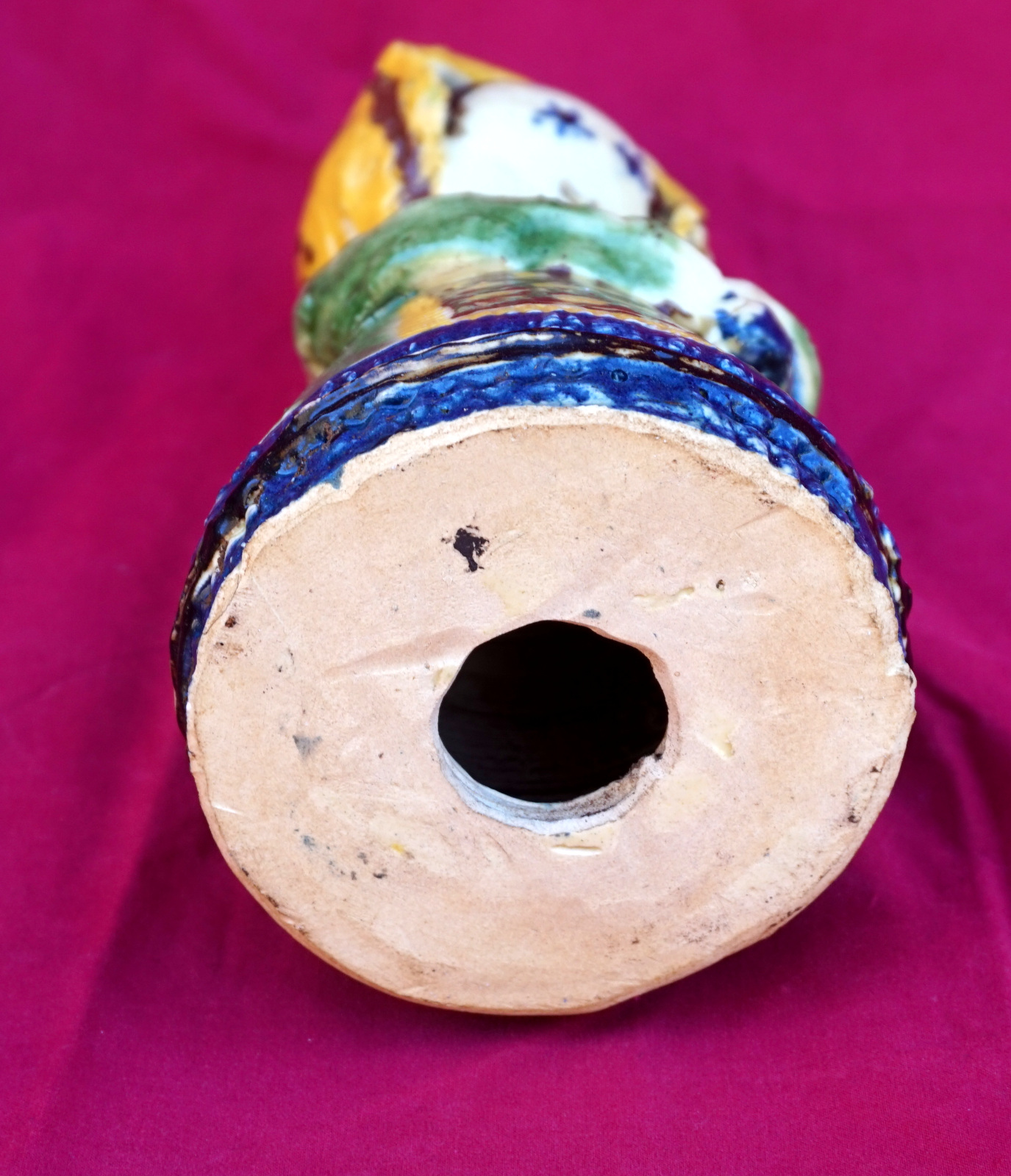 French folk art pottery crowned Virgin Mary with Jesus Child made by St Jorioz near Annecy french Alps. 8" (20.5cm) tall, 3 1/2" (9cm) diameter to the base, weight 1lb 12.85oz (818 grams). Perfect condition as shown by the following pictures.