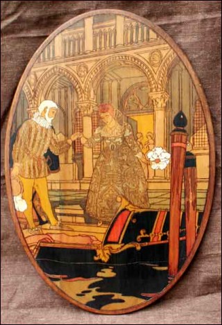 Art Deco Hand Painting Pyrography Frame Romantic Date Venice 1930