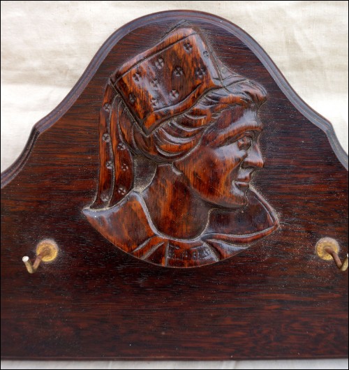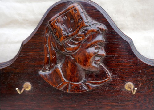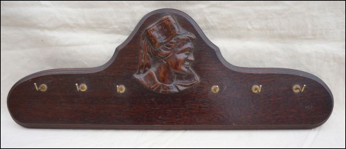 Porte-clés mural breton 70's. Il est orné d'un médaillon sculpté en camée. Bel état. Hauteur 22 cm, largeur 60 cm.