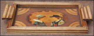 Vintage Pyrography Wooden Tea Tray Quimper 1950