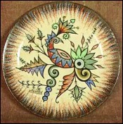 Scalloped Bowl Dish Swastika Buddhist Paul Fouillen Quimper 1960