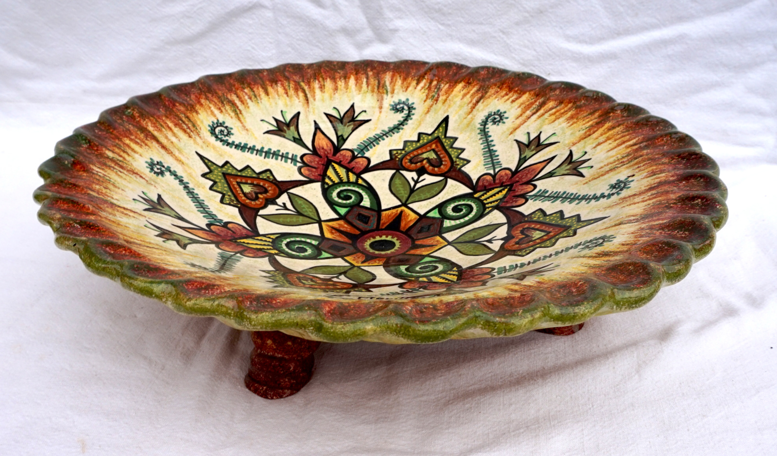 Vintage Scalloped Punch Bowl French Majolica Fouillen Quimper