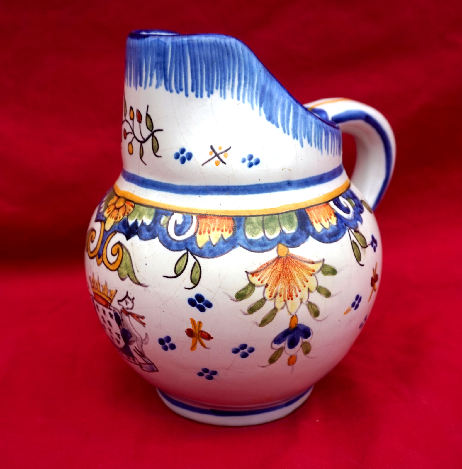 Majolica Flowered Pitcher Paul Fouillen Quimper 1945