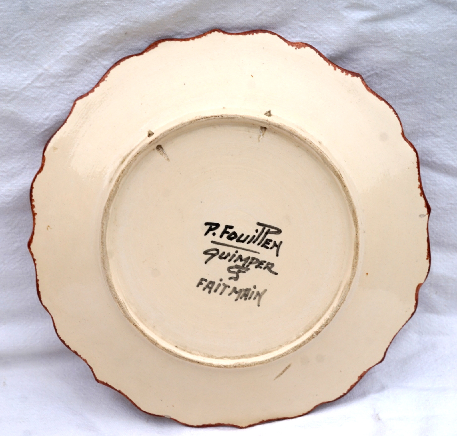 QUIMPER Fouillen Flowers Dragonfly Plate Hand Painted Faience B
