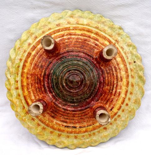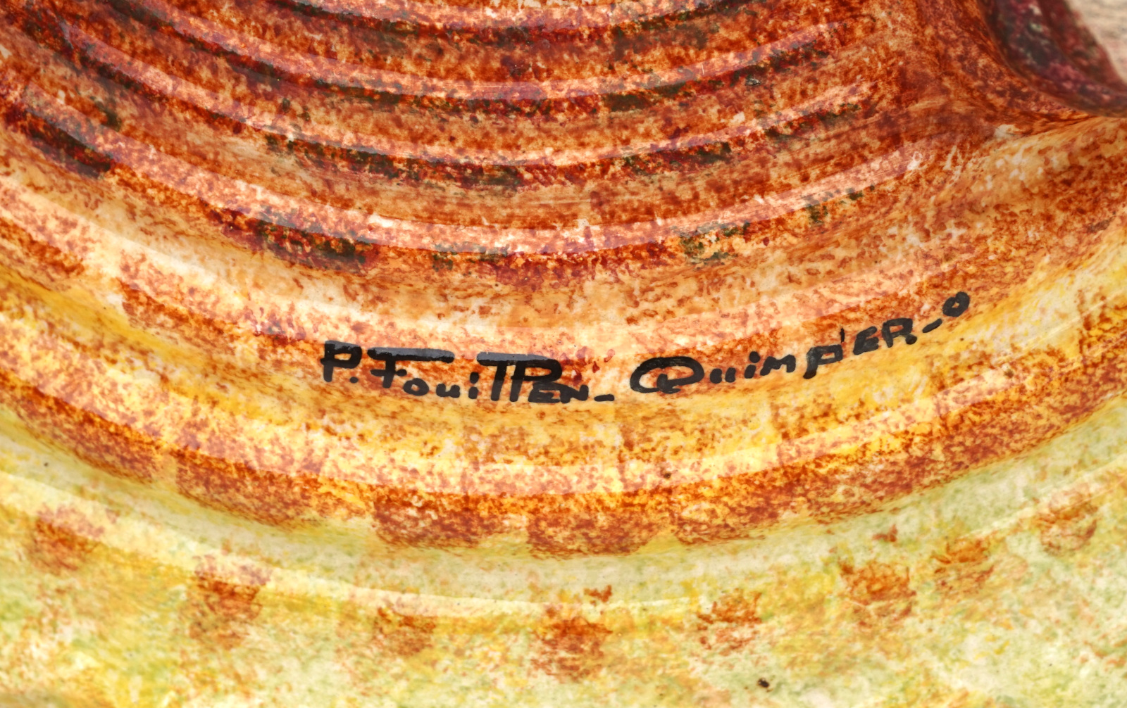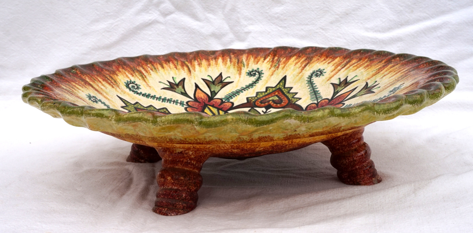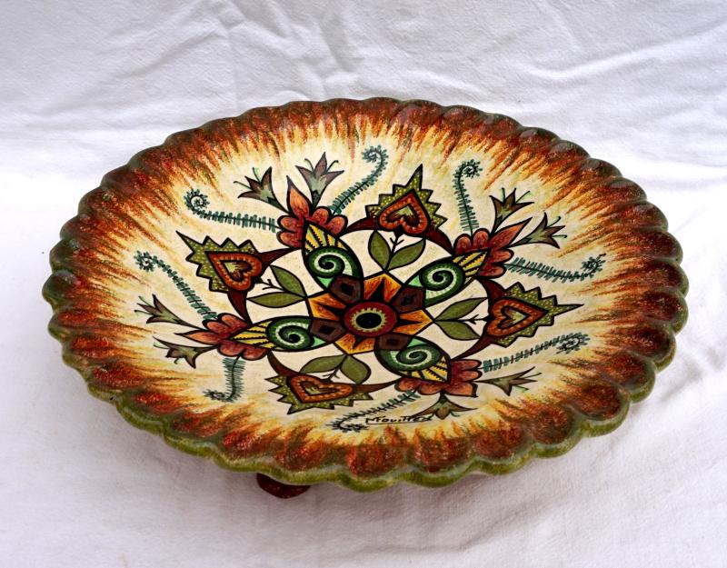 QUIMPER P FOUILLEN Large Ø 15 1/4" Footed Dish Centerpiece French Hand Painted Faience