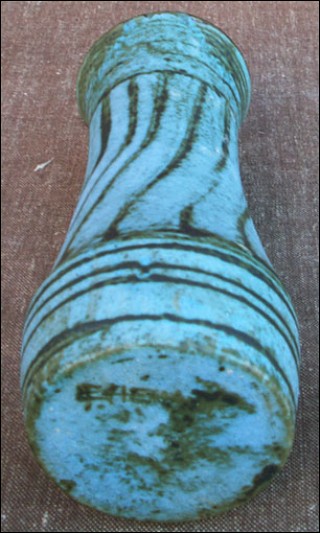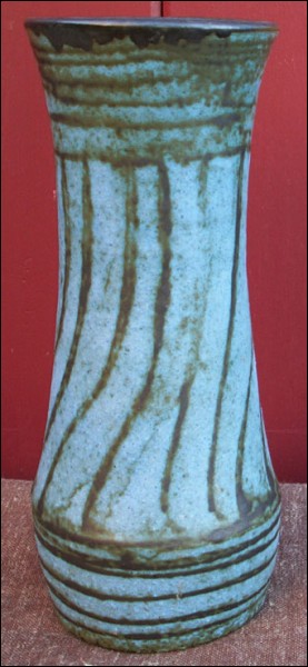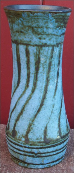 Artistic vase in blue enameled stoneware made by Danuta Le Henaff artist in Brittany. Good condition. Signed on the bottom. 9" high.