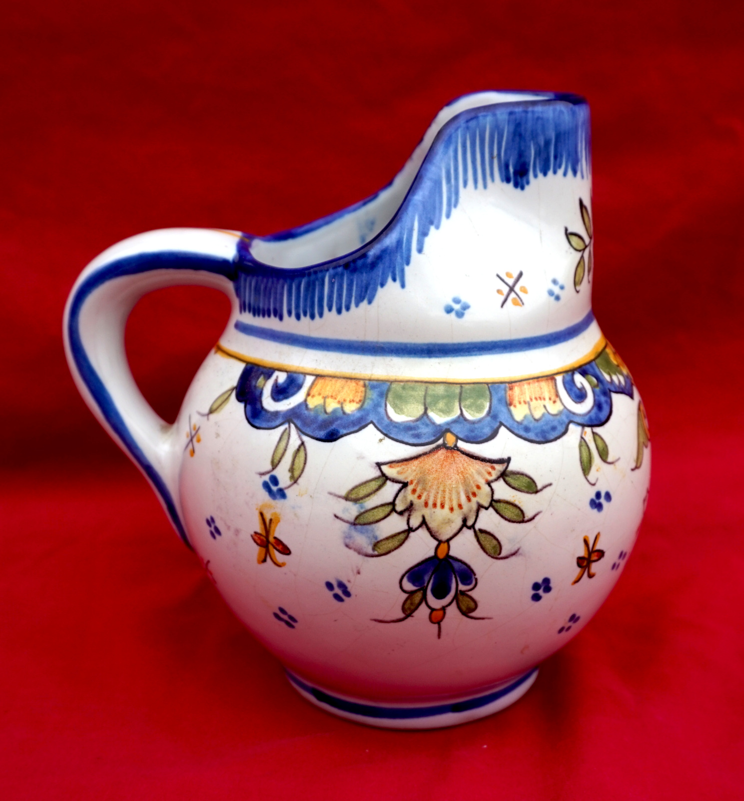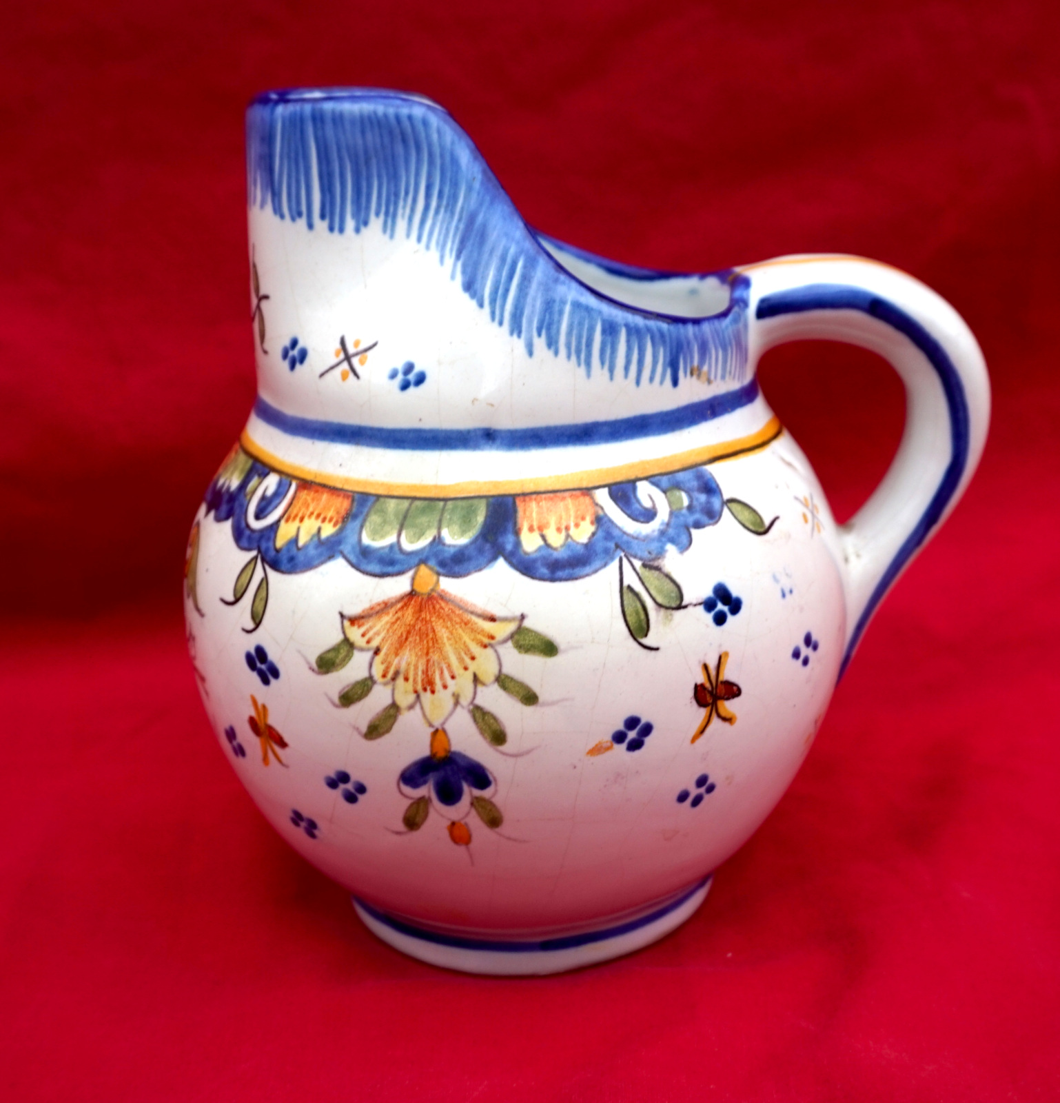 DESVRES H DELCOURT Quiberon Pitcher Creamer French Hand Painted Faience 1910's