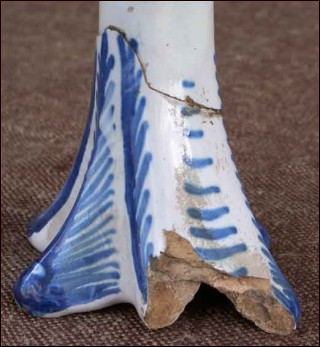 Ermine shaped candle holder in French majolica made by the famous Jules Verlingues in Desvres factory around 1910. The hand painting pattern shows the Brittany arms on a Rouen decor. The foot is damaged as you can see on the pictures below. It's signed on the bottom. 5"1/8 high 3"1/2 width.