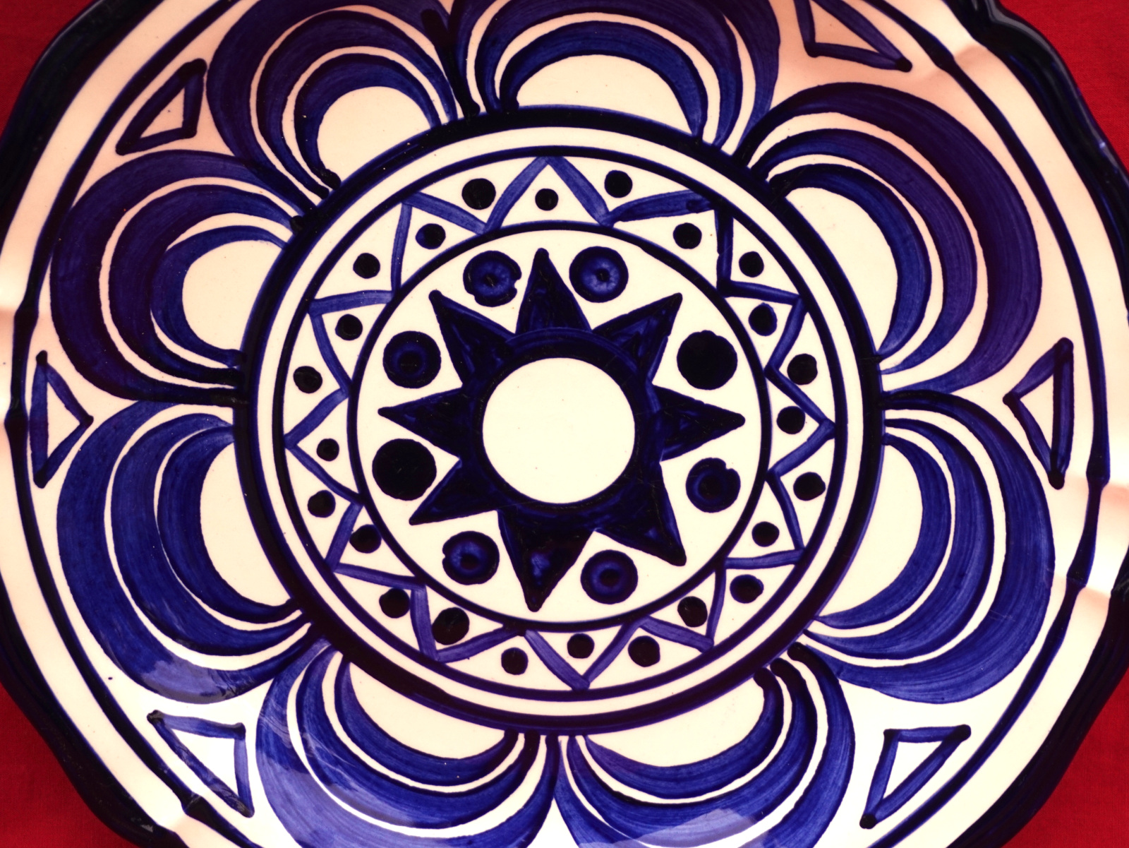 Vintage Blue White Geometric Decor Plate St Jean Bretagne