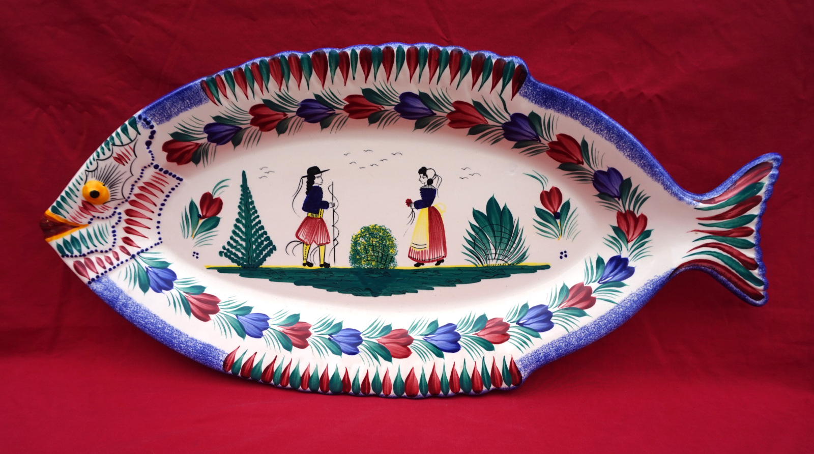 HENRIOT QUIMPER Fish Shaped Tidy Little Breton French Hand Painted Faience