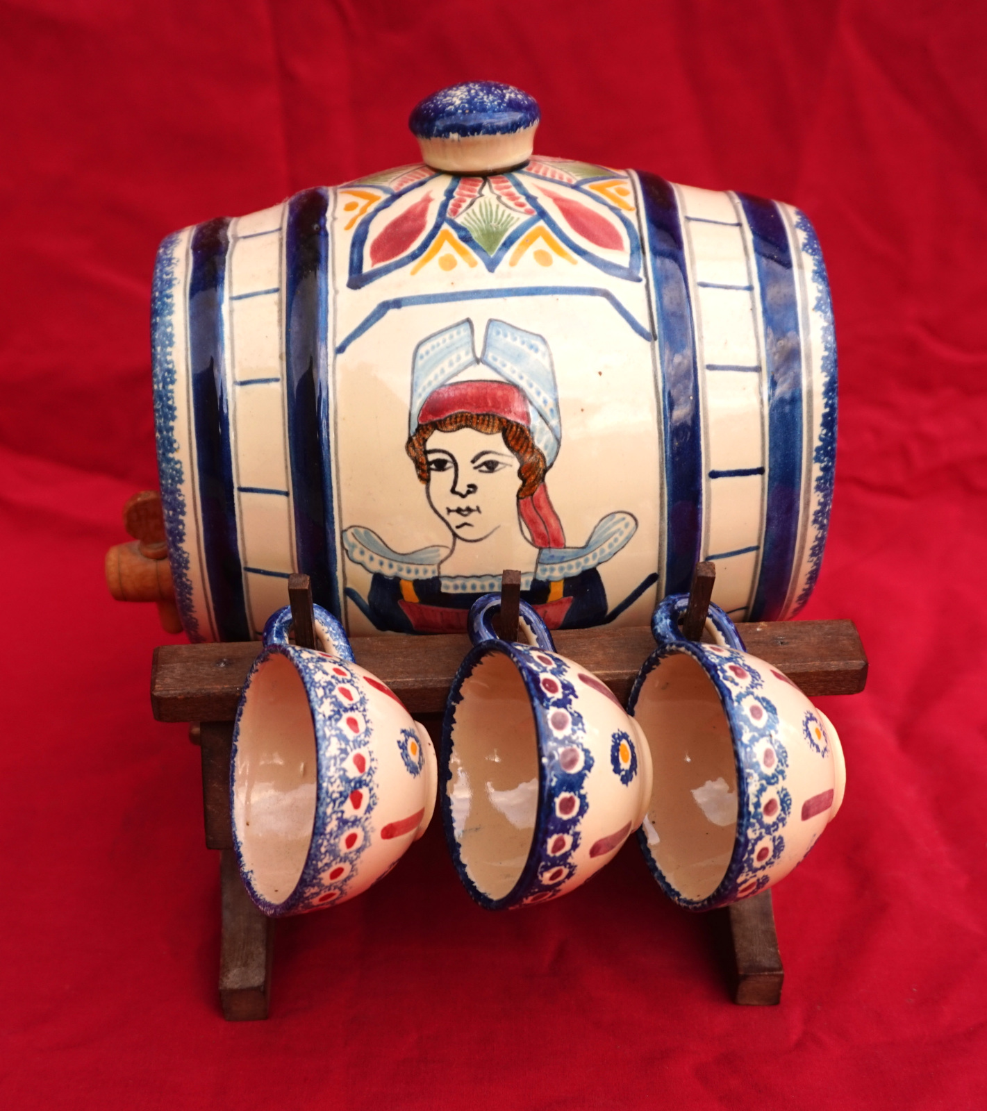 Jos KERVELLA HENRIOT QUIMPER Liquor Set Couple Breton Barrel 6 Cup