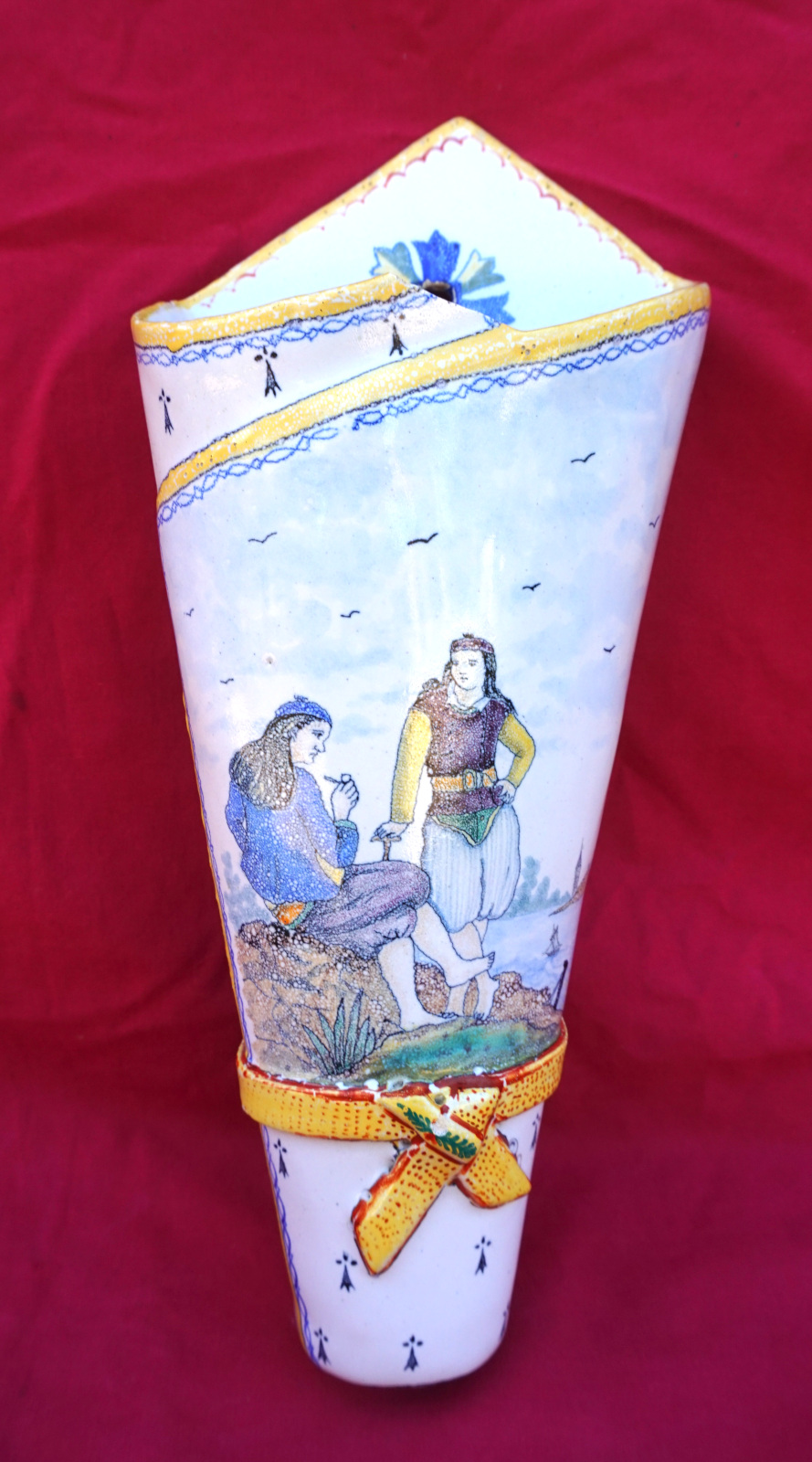 QUIMPER HB Large Wall Pocket Vase 2 Breton Sailors 1900's
