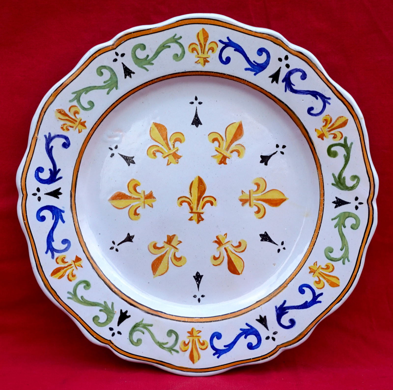 QUIMPER Porquier Beau Fleur de Lis Hand Painted Plate 1890's